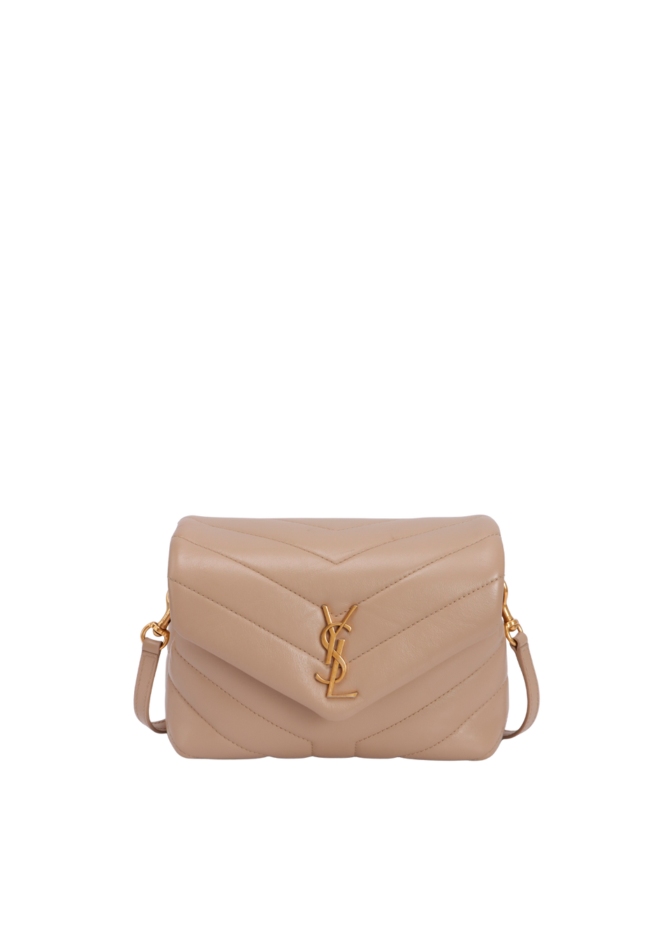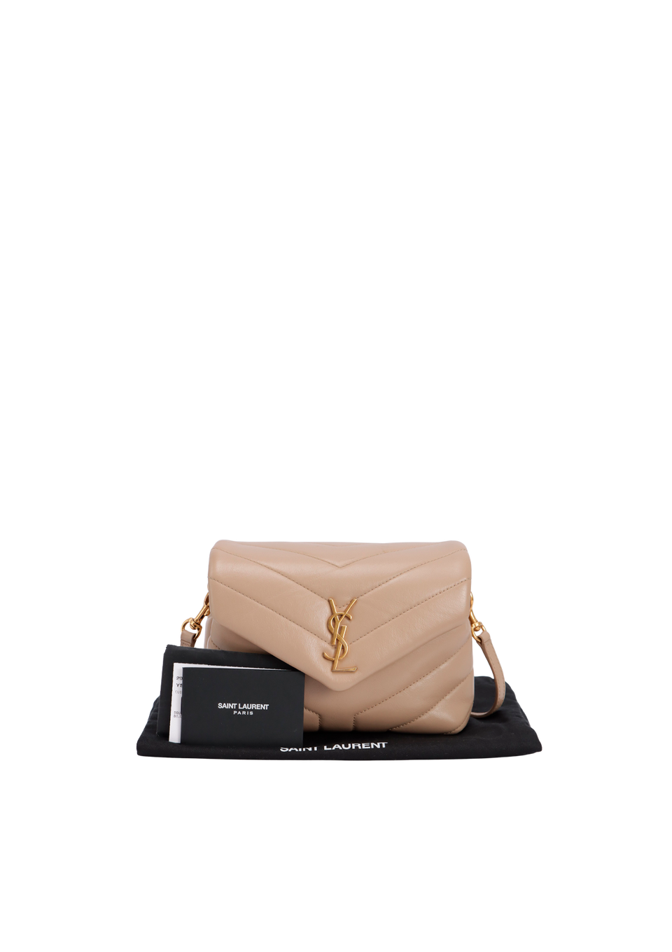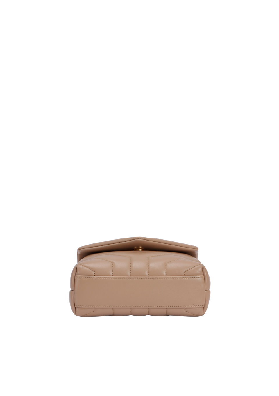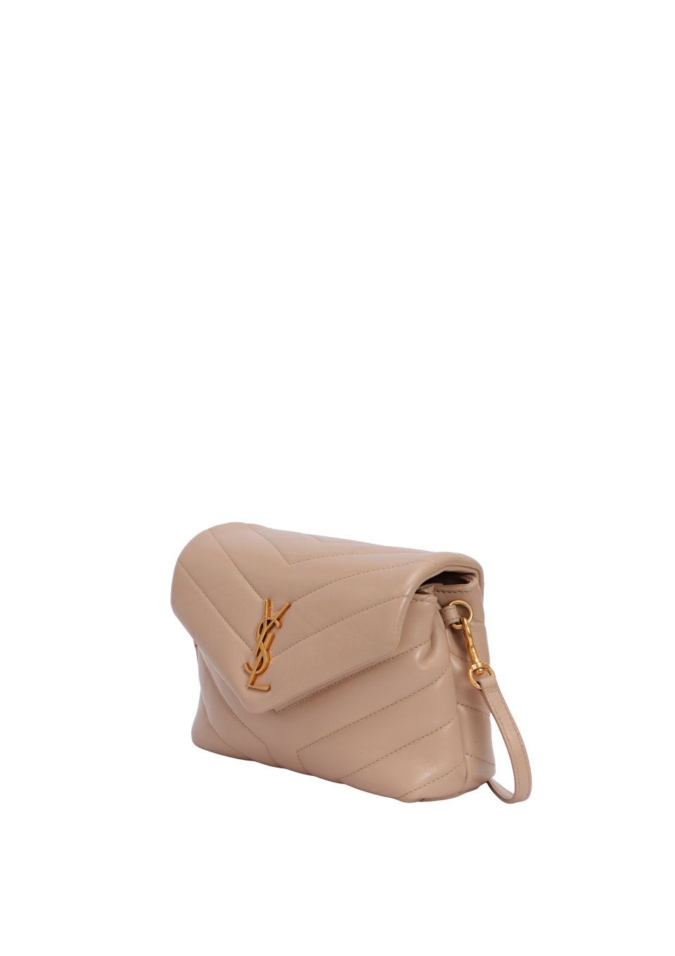 Descrição do Material: Couro calfskin bege com acabamento matelassê chevron Y