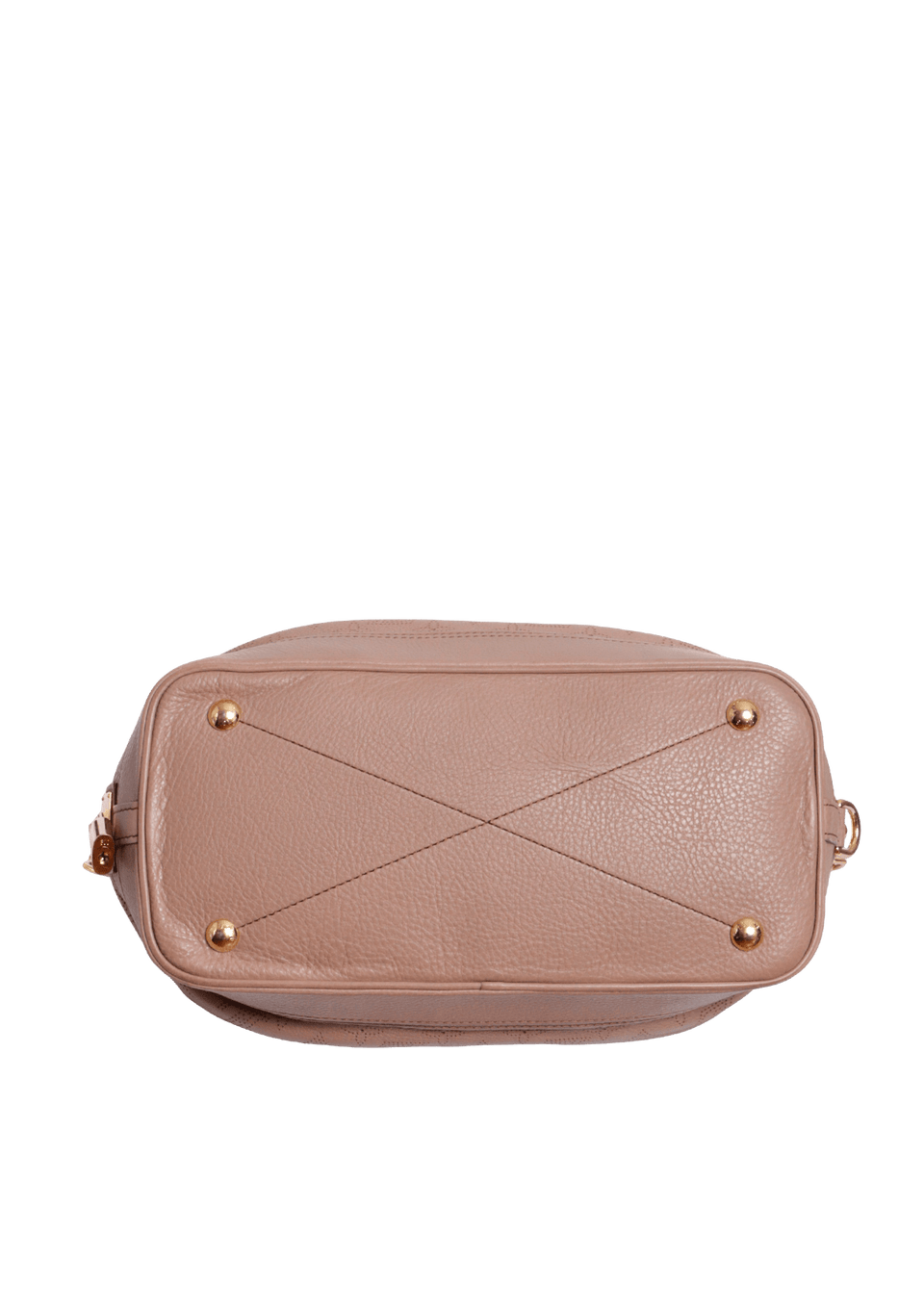 Condição: Bom, com aparência de usado. Apresenta leves desgastes no couro, especialmente dos cantos inferiores e na tag de couro, leves fios puxados nos acabamentos superiores, pequena deformação das estruturas das alças e da bolsa nos acabamentos inferiores, leves desgastes nas ferragens e leves marcas de uso no forro.