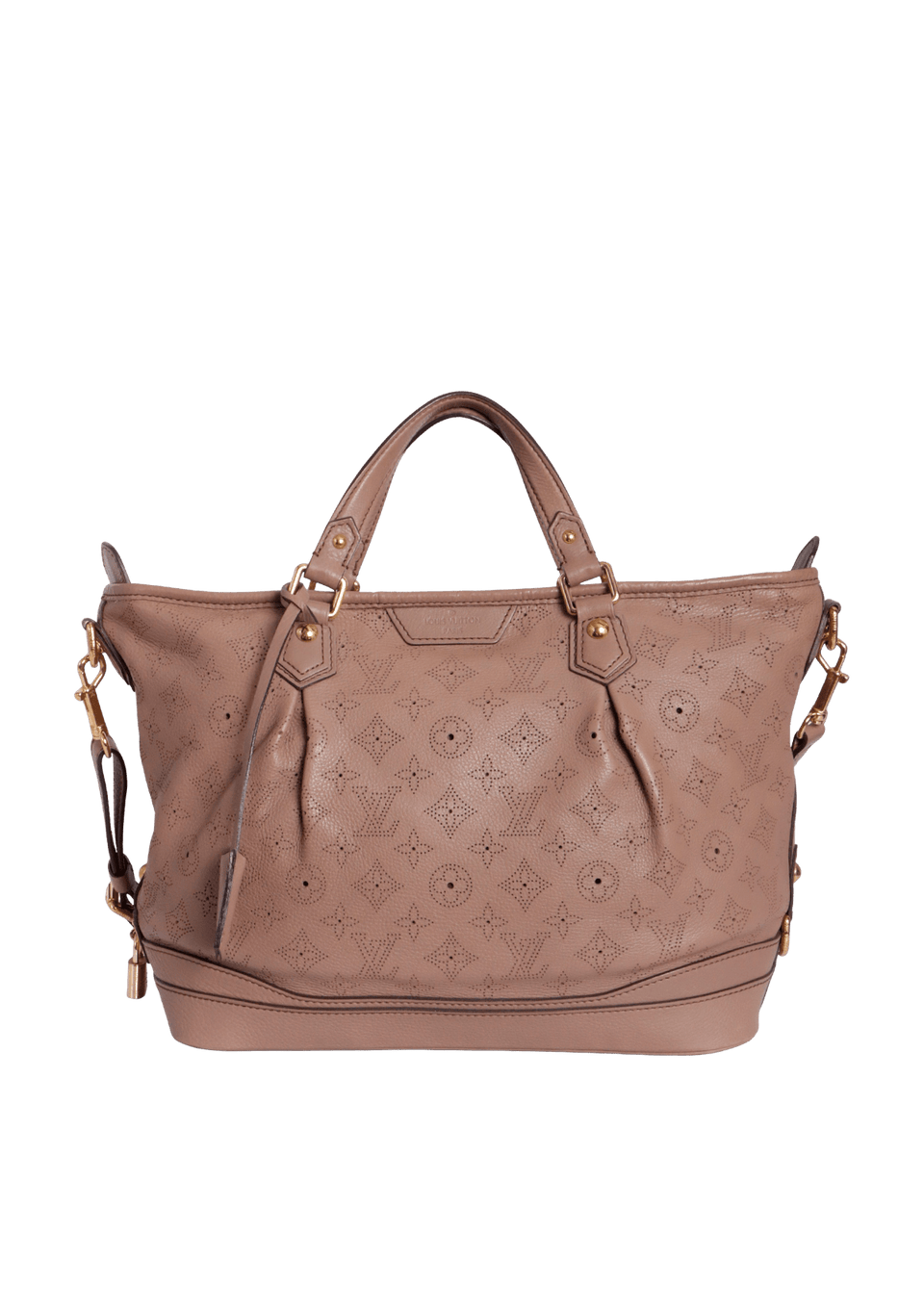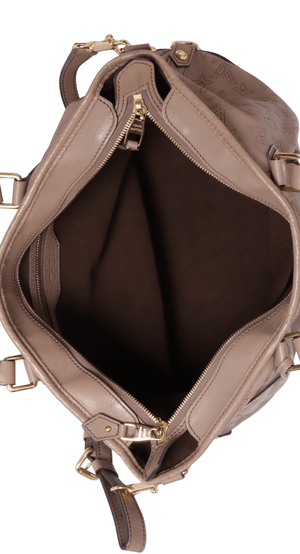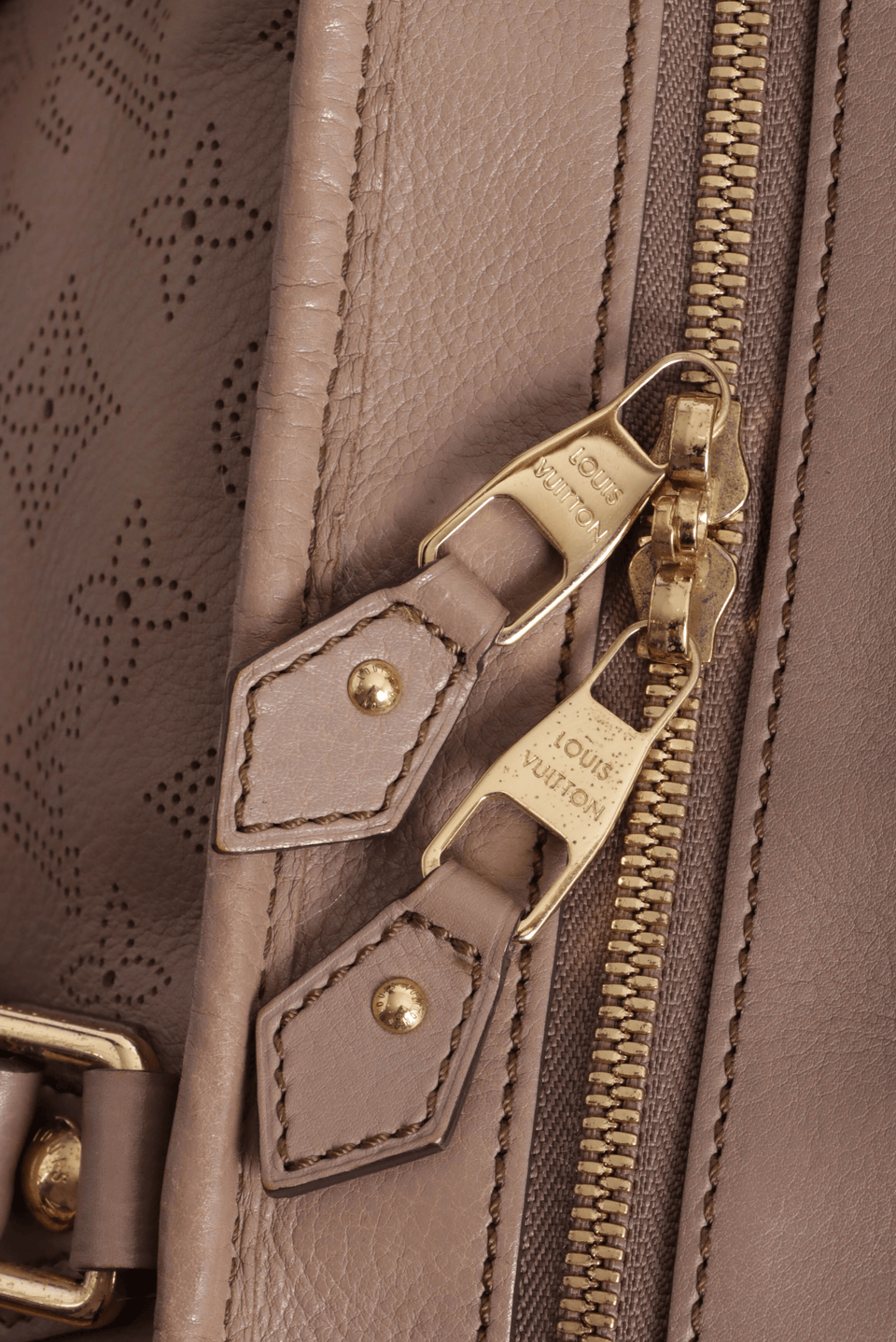 - Couro calfskin marrom com acabamento Monogram perfurated;