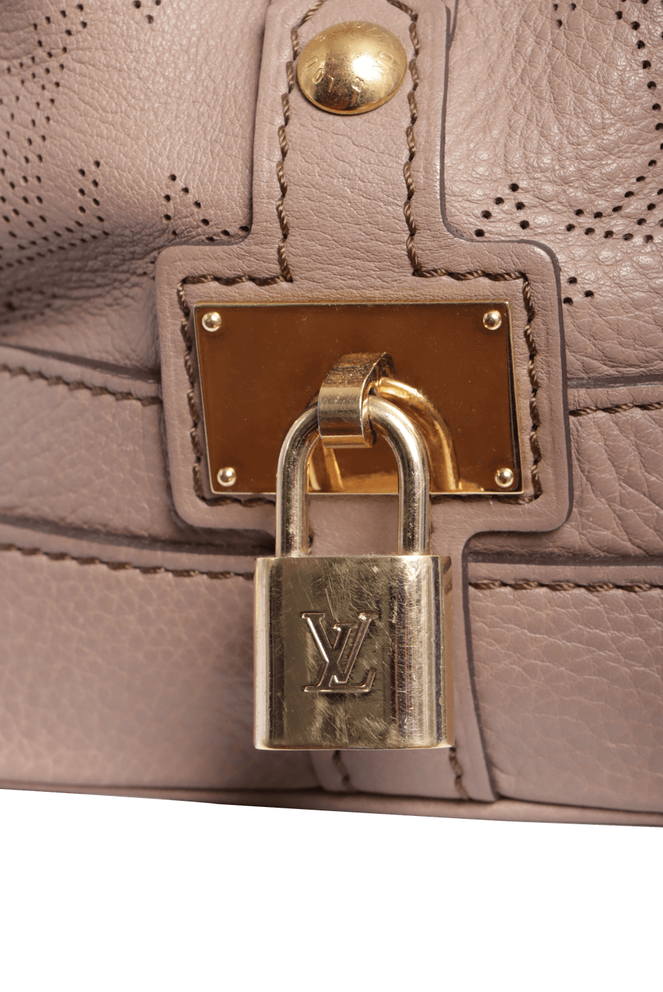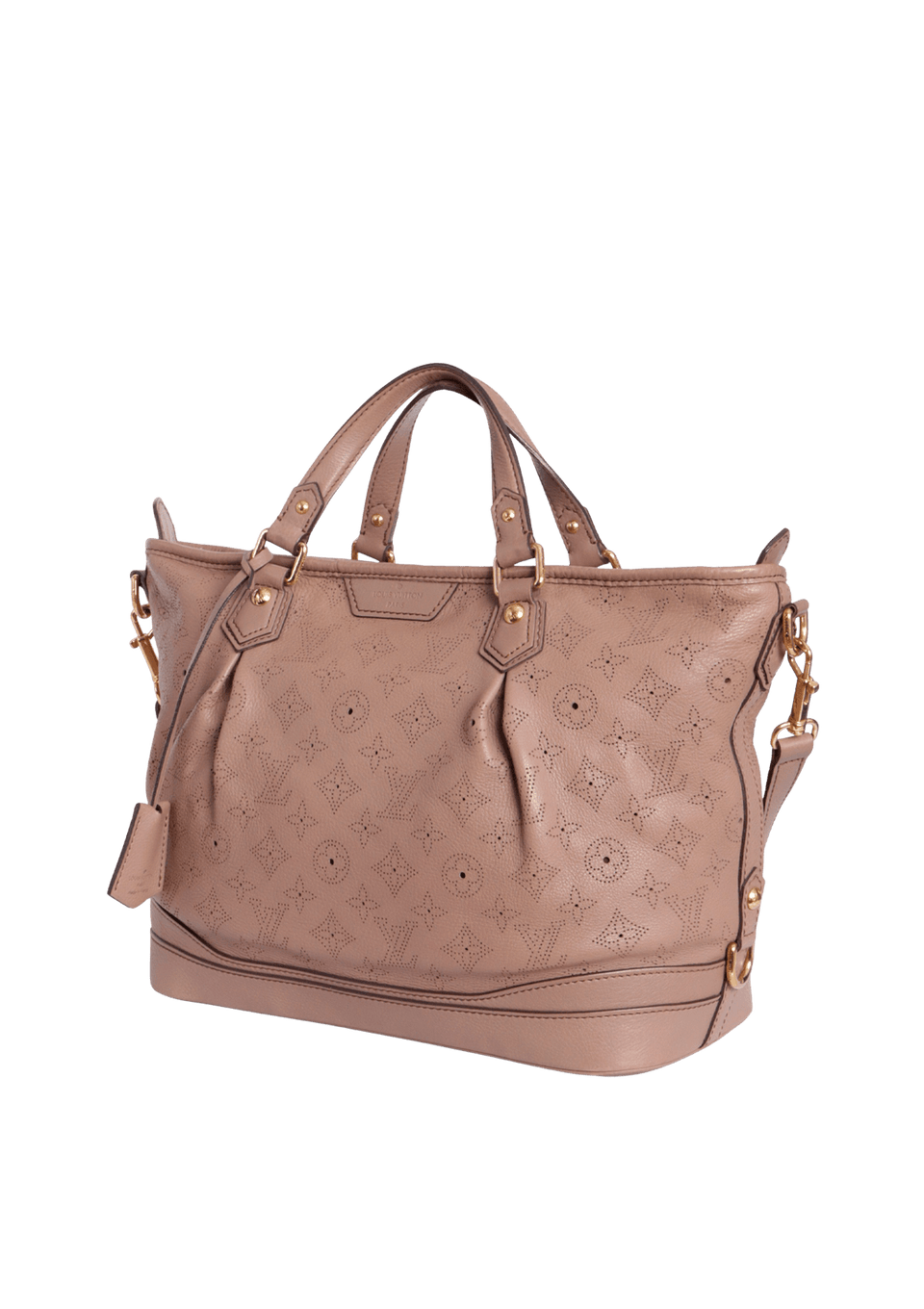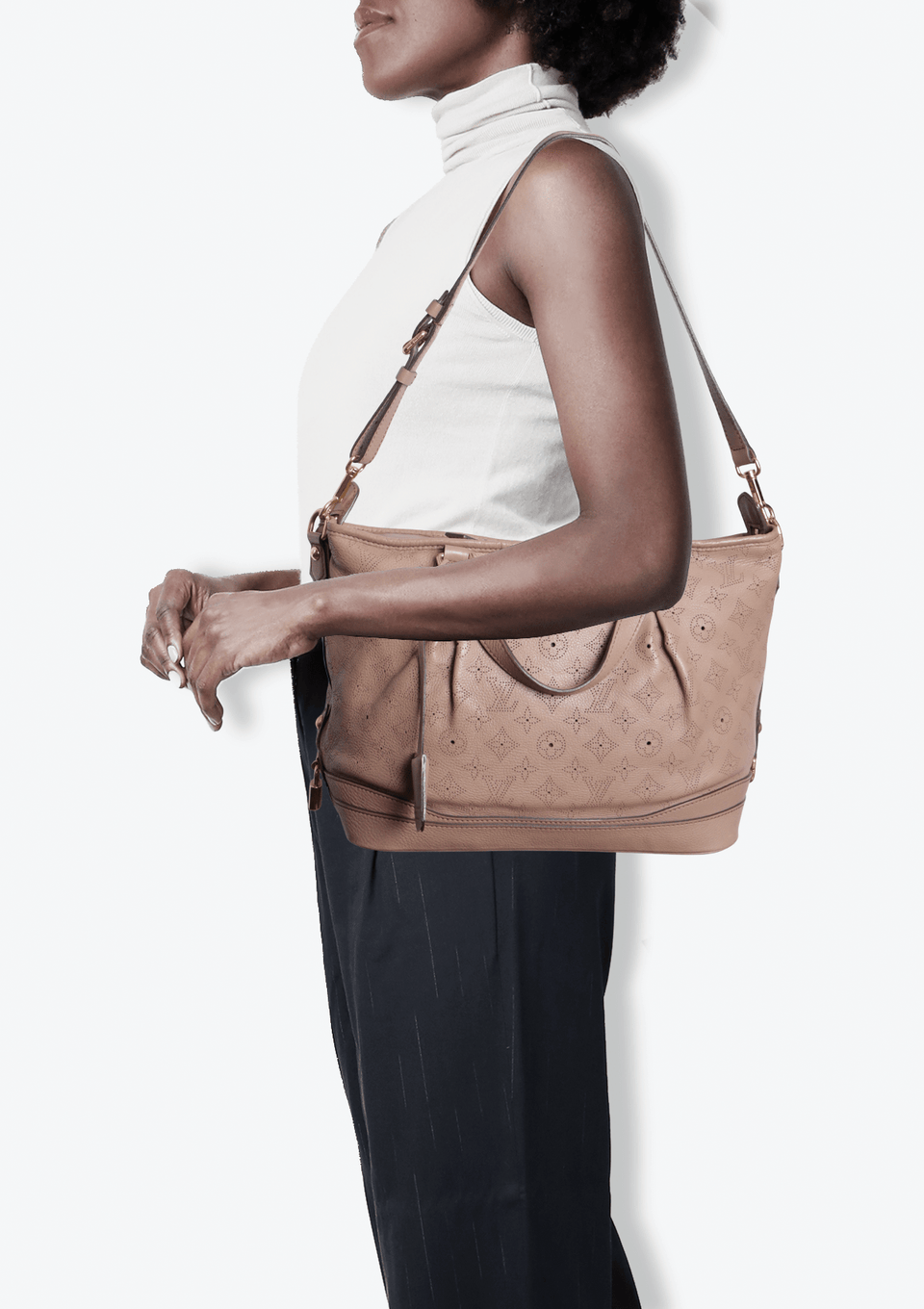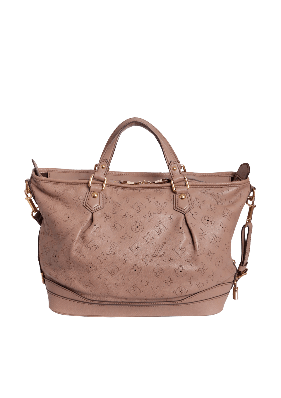 - Couro calfskin marrom com acabamento Monogram perfurated;