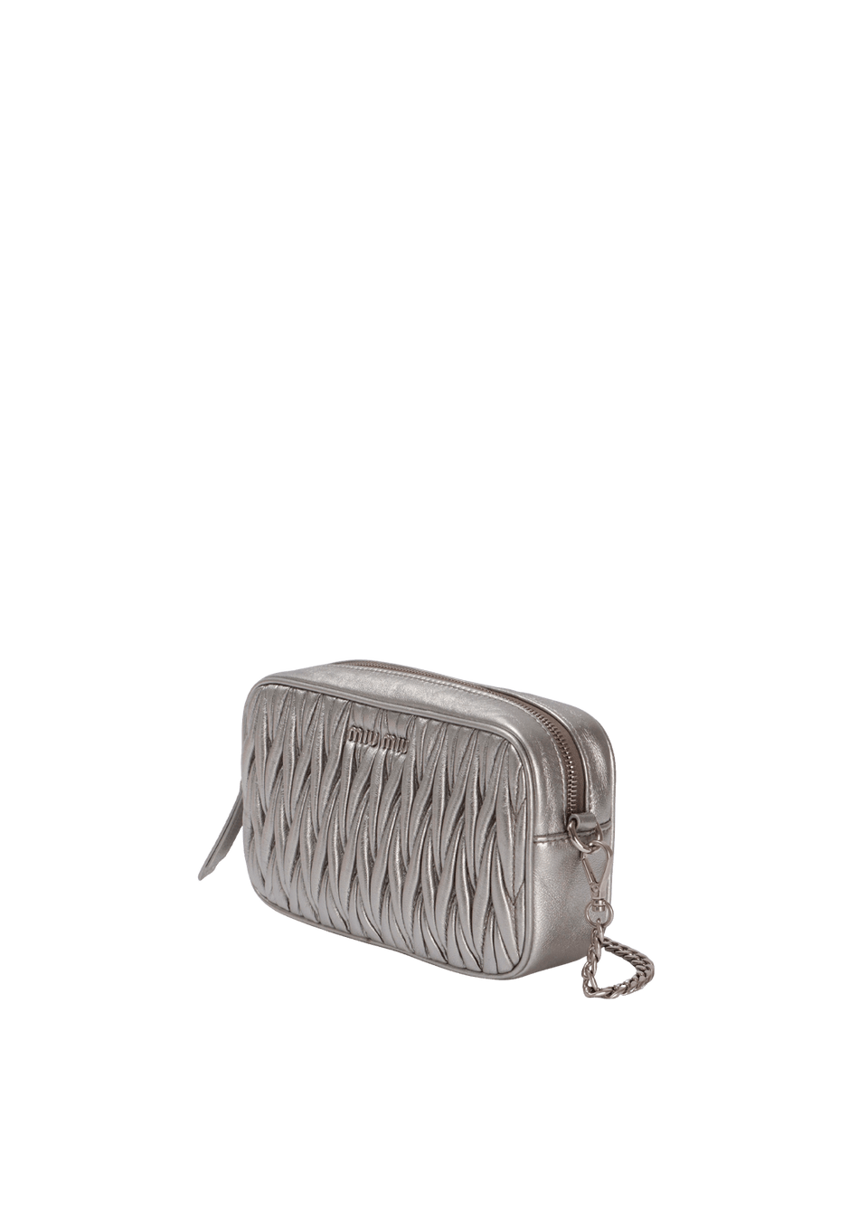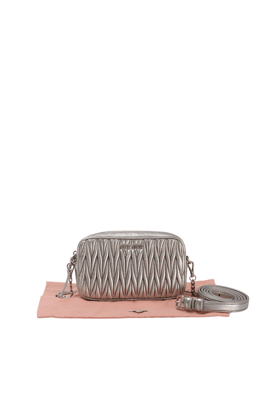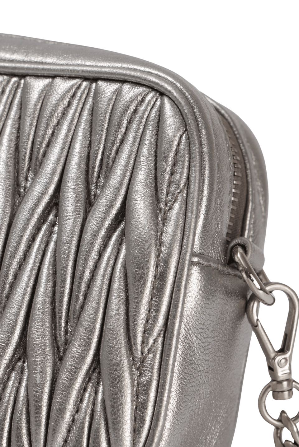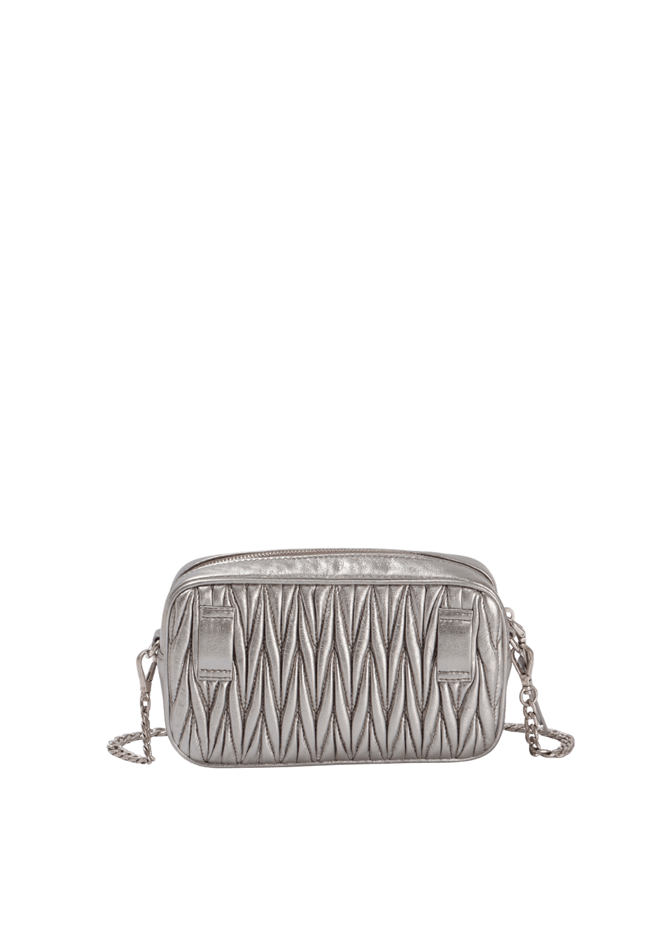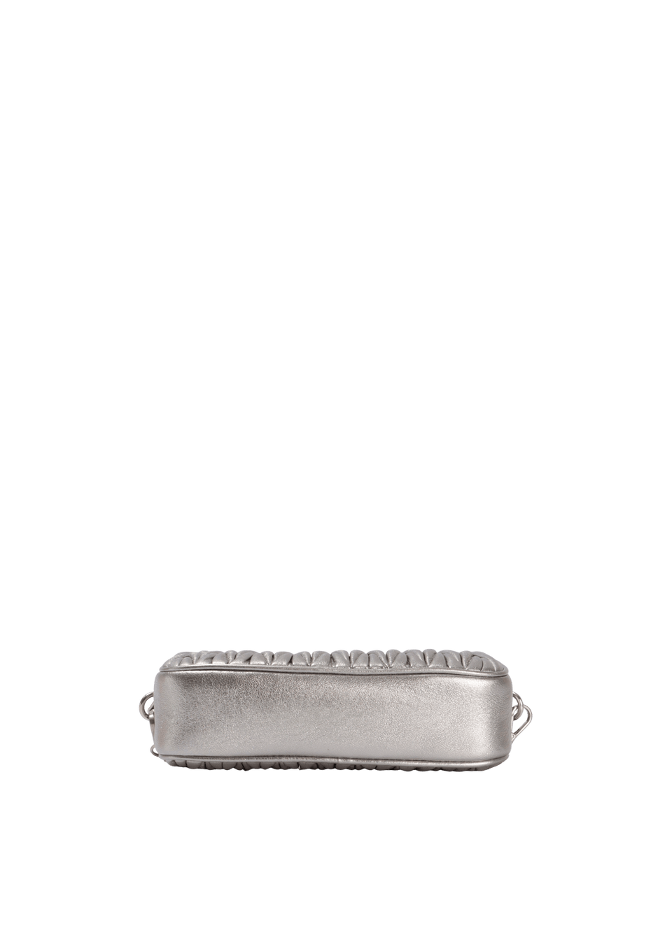 Descrição do Material: Couro calfskin nappa prateado com acabamento matelassê Gaufre