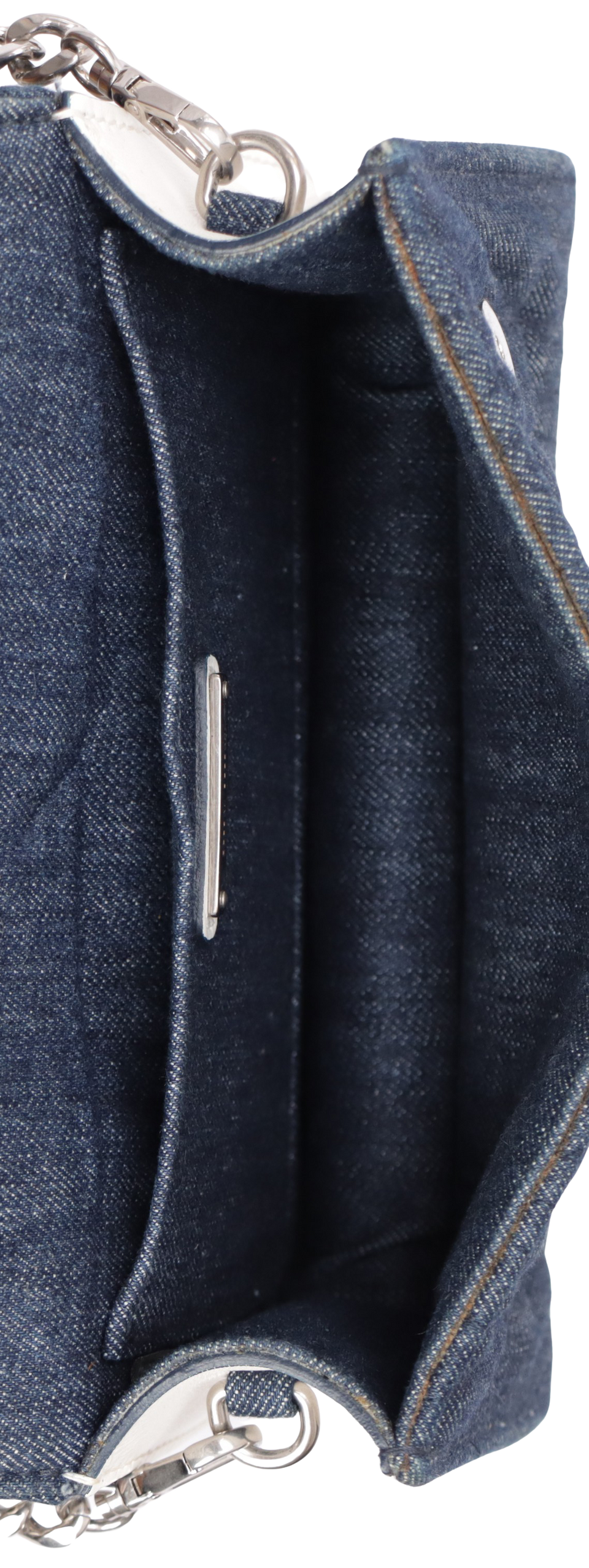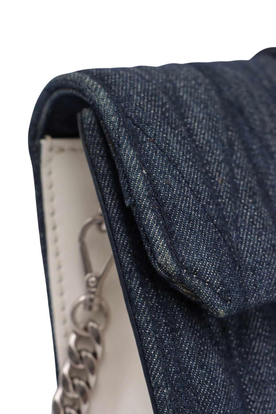 Descrição do Material: Couro calfskin branco revestido por denim azul com acabamento matelassê