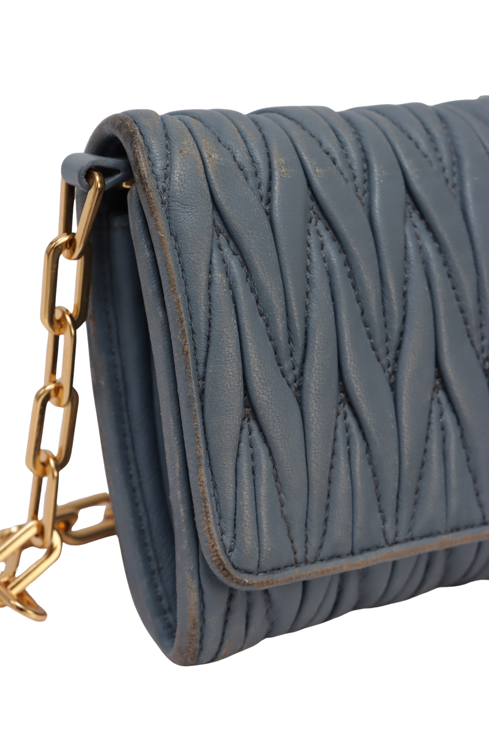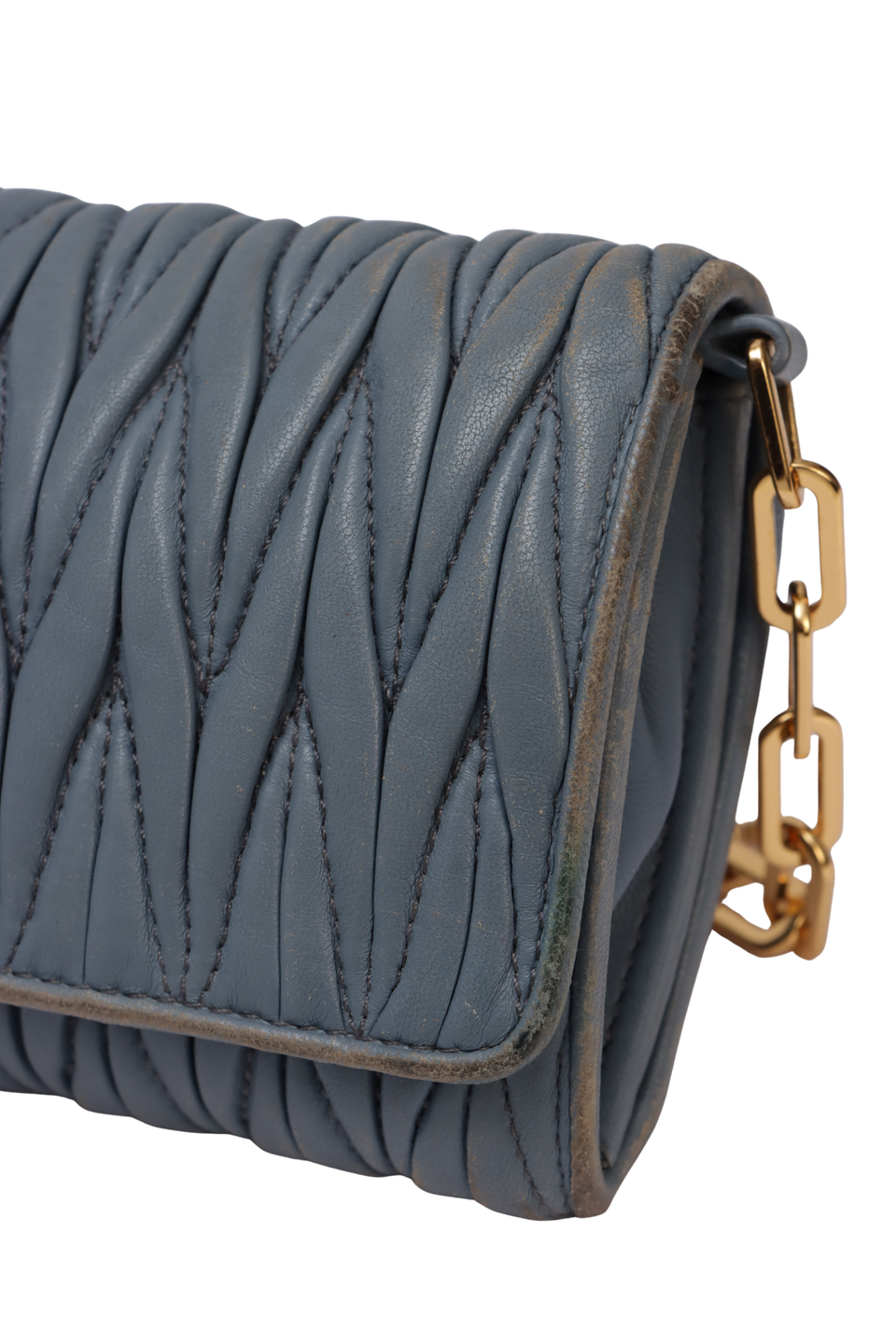 Descrição do Material: Couro lambskin com acabamento matelassê azul