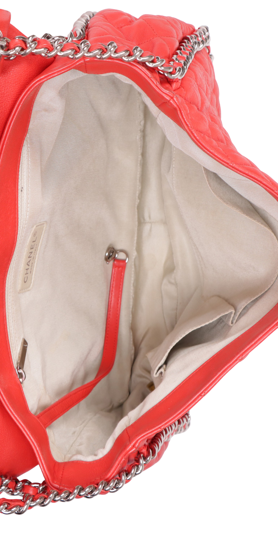Descrição do Material: Couro calfskin vermelho com acabamento matelassê