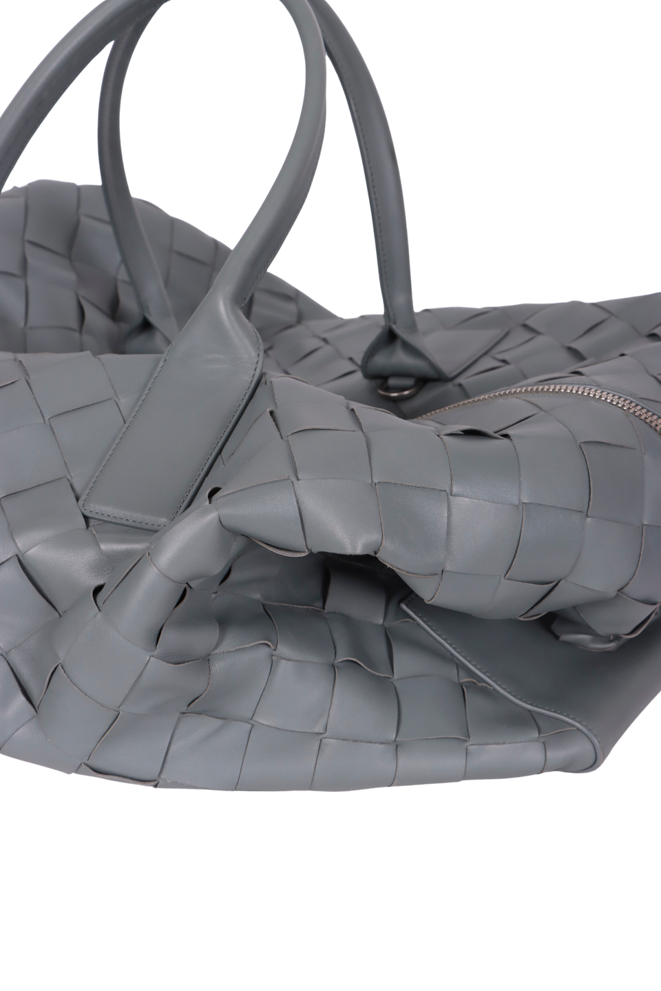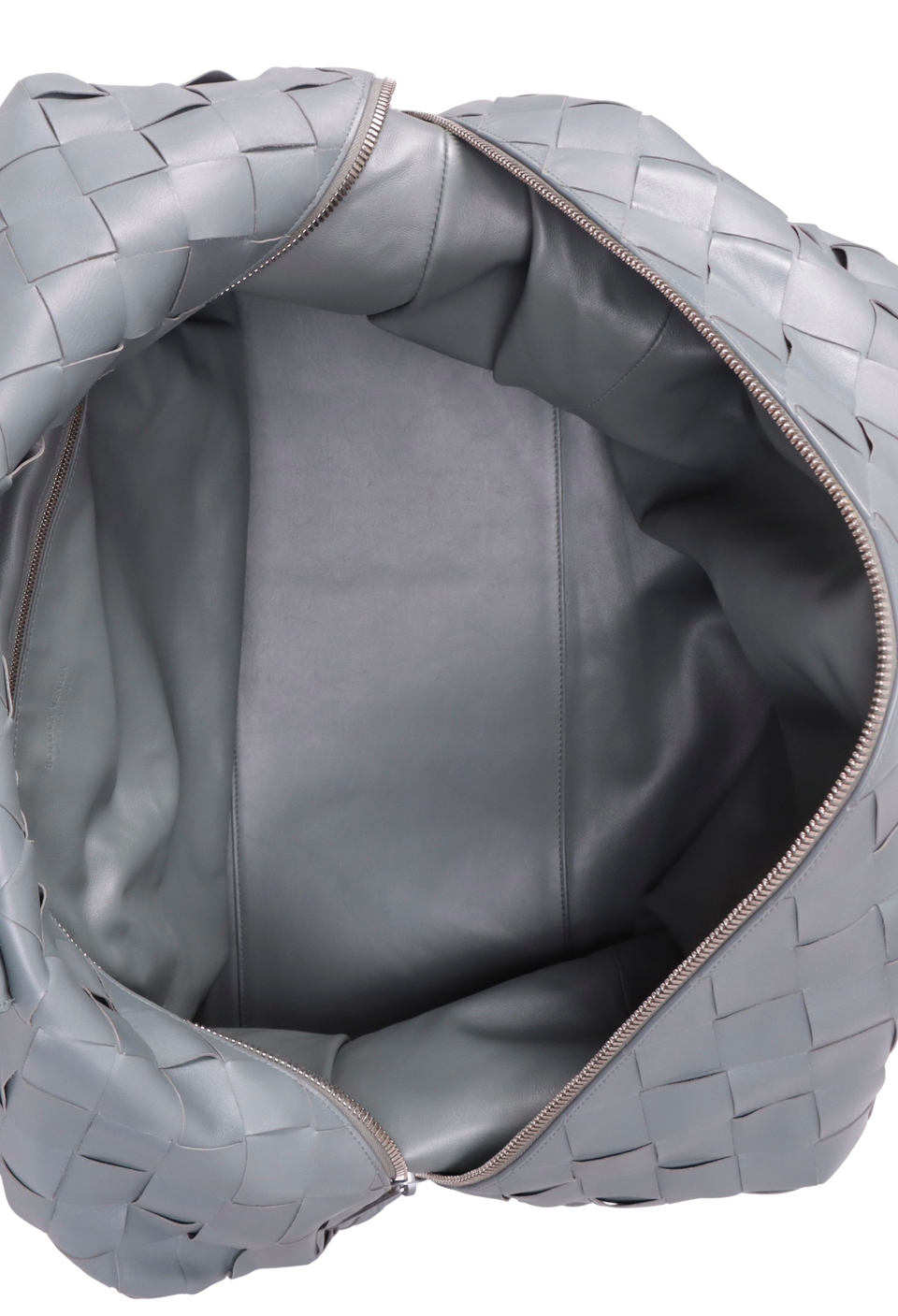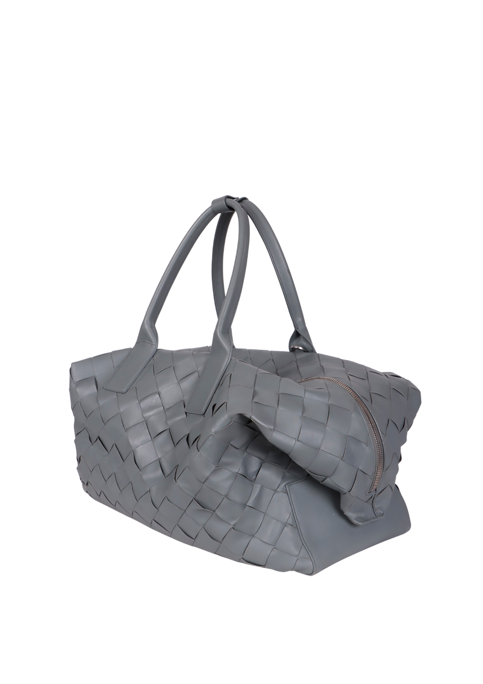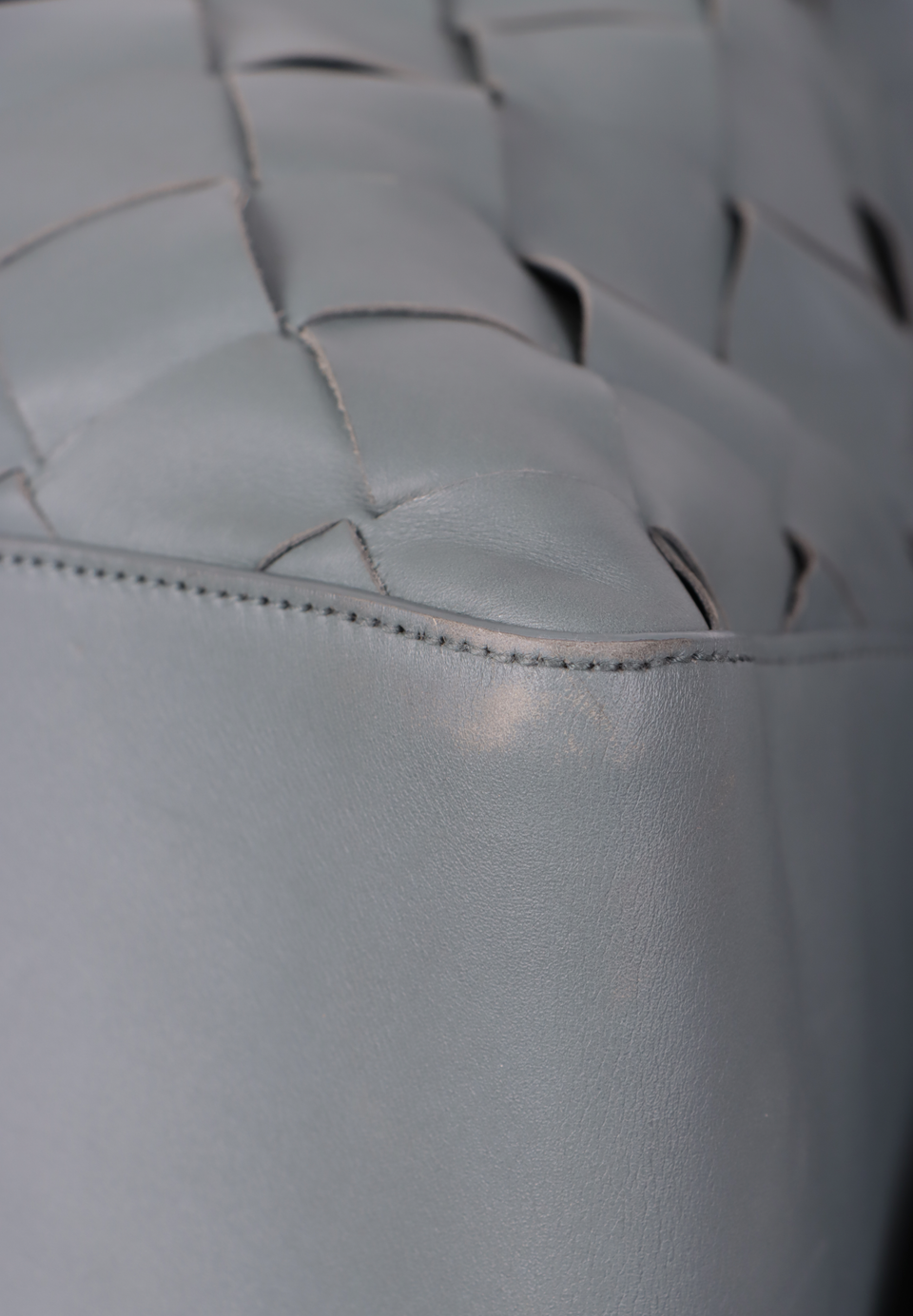 Descrição do Material: Couro calfskin cinza com acabamento Intrecciato