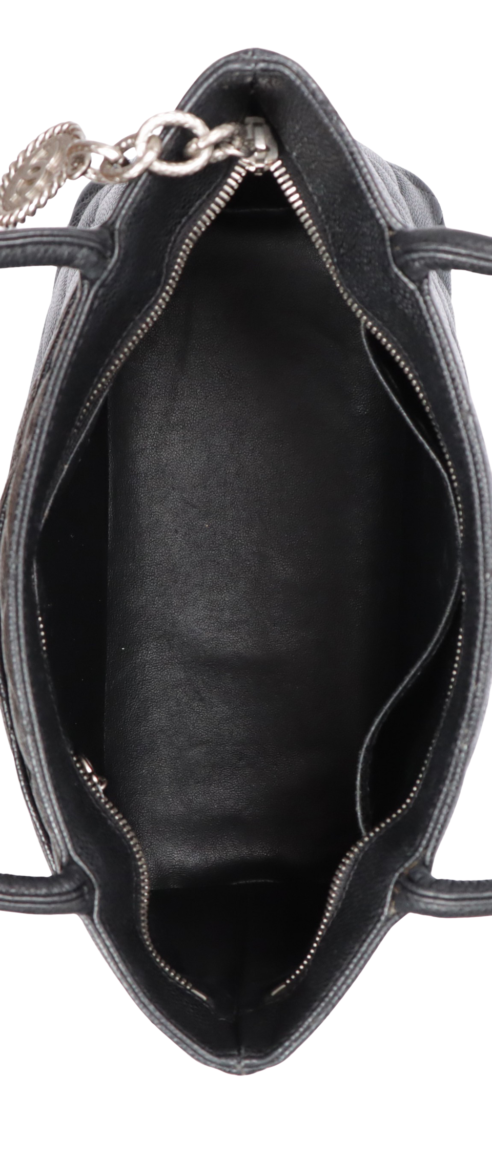 Descrição do Material: Couro calfskin preto com acabamento matelassê e caviar