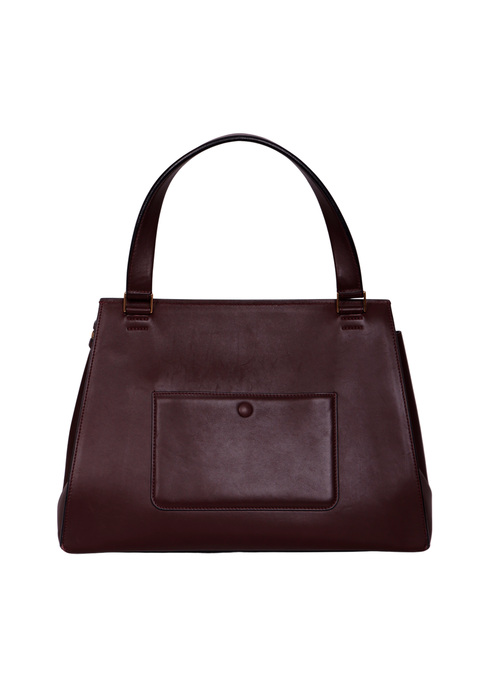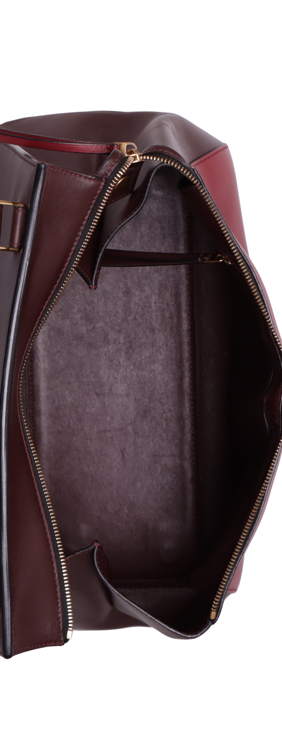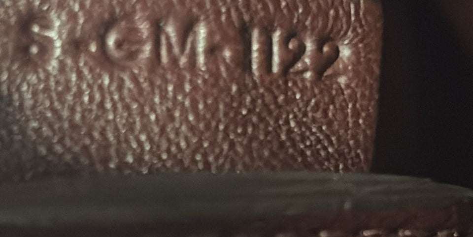 Bom, com aparência de usado. Apresenta leves deformidades pela estrutura nas laterais da parte frontal e na alça, pequenas marcas de uso e descolorações nas ferragens do puxador do cursor e nos detalhes da alça, leves marcas de uso, desgastes, manchas esbranquiçadas e escurecidas pelo couro, principalmente na parte superior frontal, cantos da base e na parte superior de trás, pequenos desgastes e fissuras nas selagens, especialmente na alça, nas extremidades laterais superiores e cantos da base e leves marcas de uso pelo couro interno.