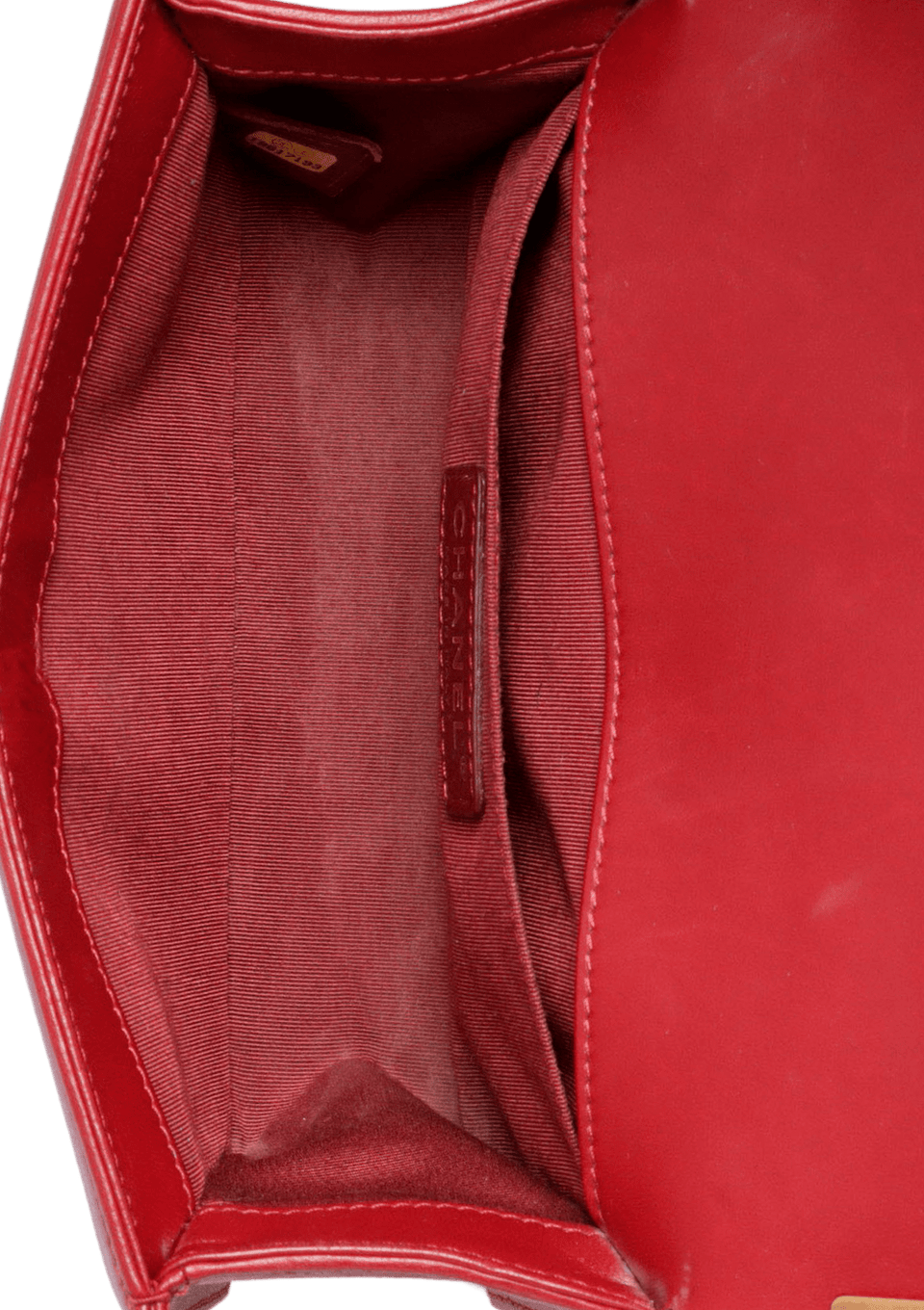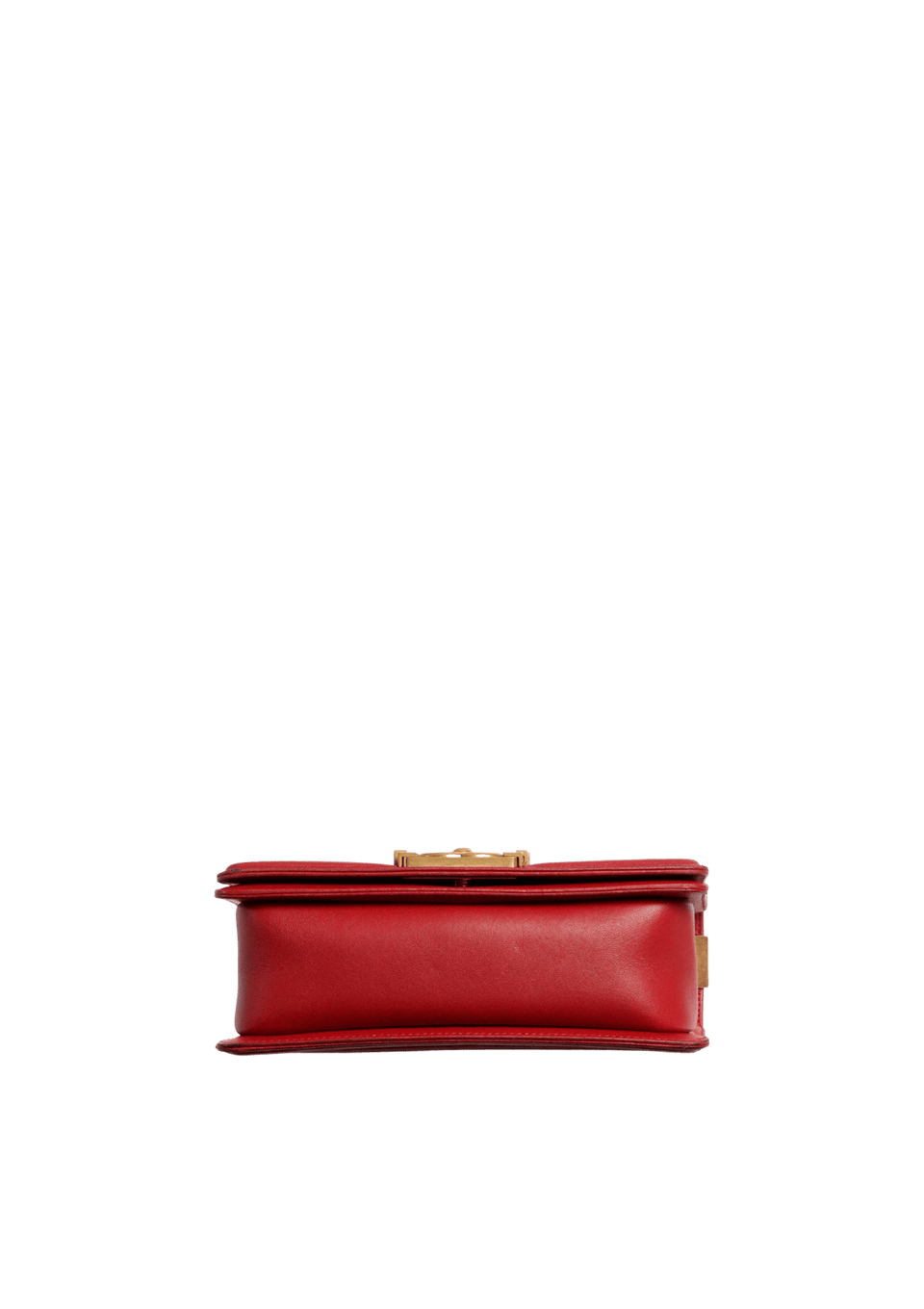 Condição: Muito bom, com aparência de seminovo. Apresenta levíssimos desgastes e manchas escurecidas nos quatro cantos da base, principalmente no canto direito posterior, mínimas marcas de uso no couro externo e interno, levíssimos desgastes nas ferragens, especialmente mínimas descolorações no fecho, mínima mancha de caneta na parte interna da aba e levíssimas marcas de uso no forro. As manchas escurecidas e a opacidade das ferragens são características do design original da peça.