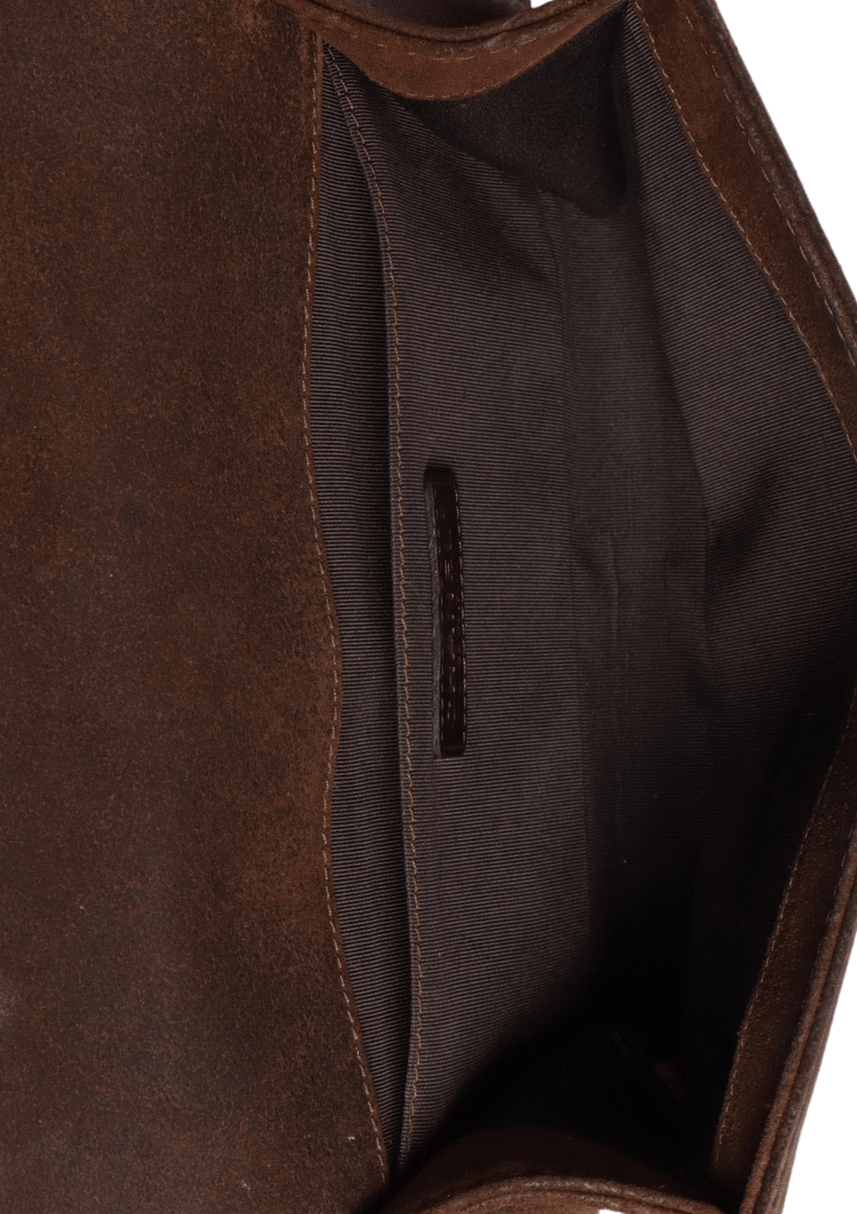 Condição: Bom, com aparência de usado. Apresenta leves desgastes pelo nobuck nas extremidades, especialmente no canto da base do lado esquerdo, leve deformaçāo na estrutura da bolsa na parte central, pequenas manchas de uso no forro e leve odor de item guardado.
