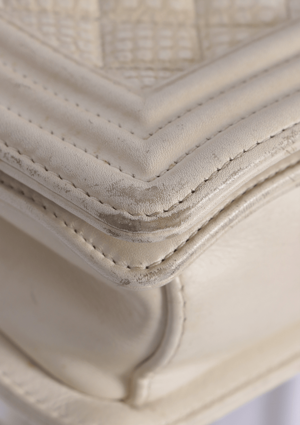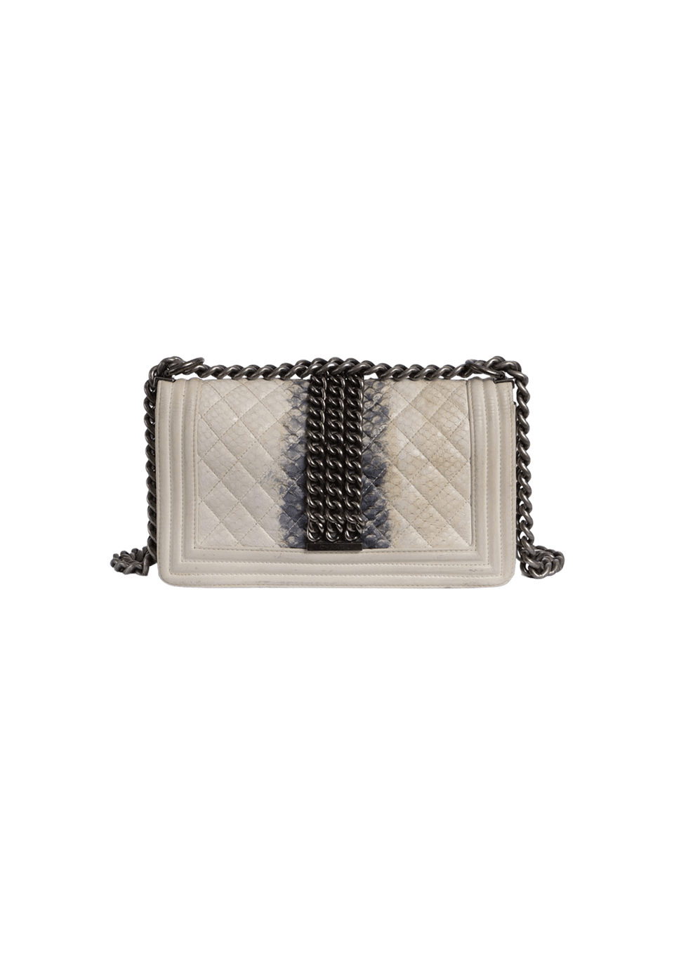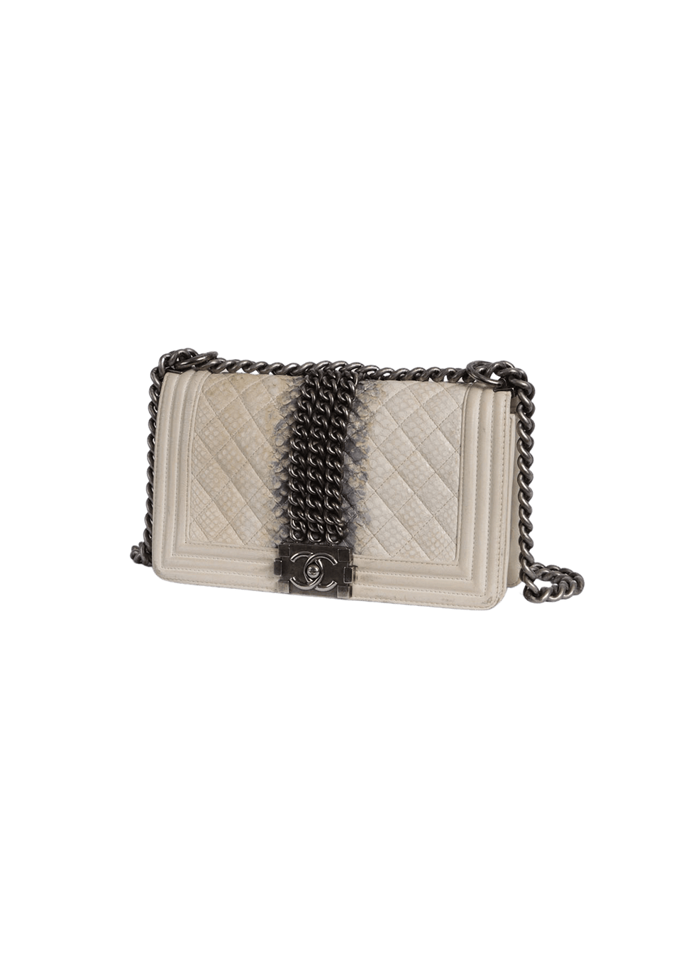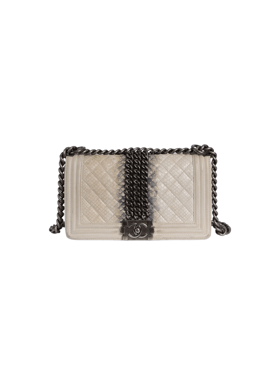 - Couro lambskin off white e pele de phython com acabamento em degradê;