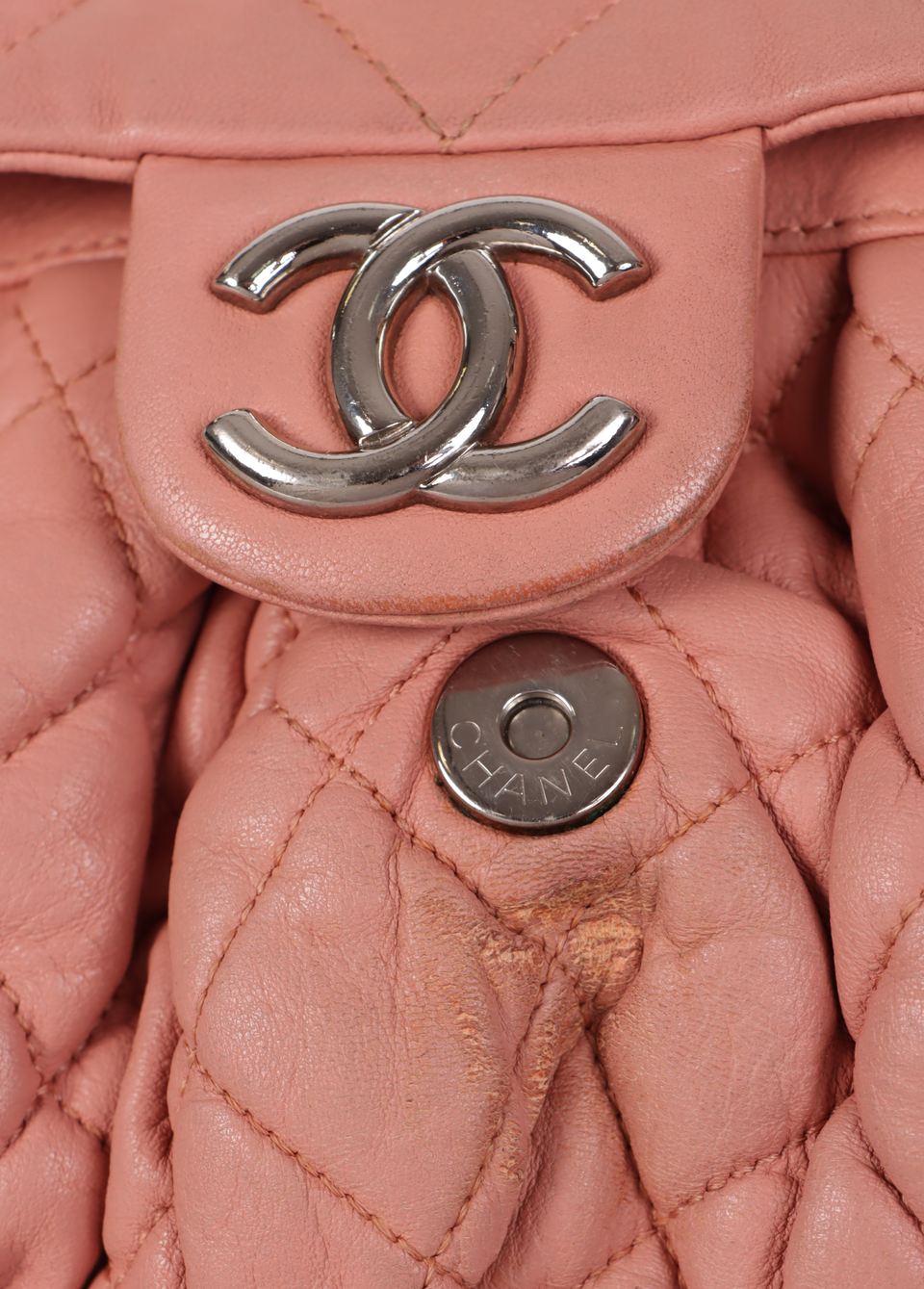 Descrição do Material: Couro calfskin rosa com acabamento matelassê