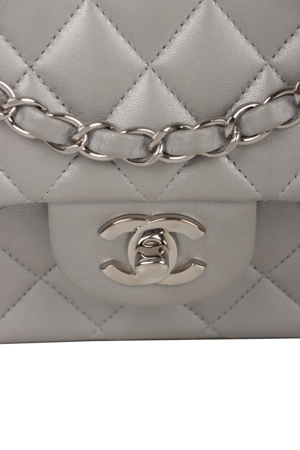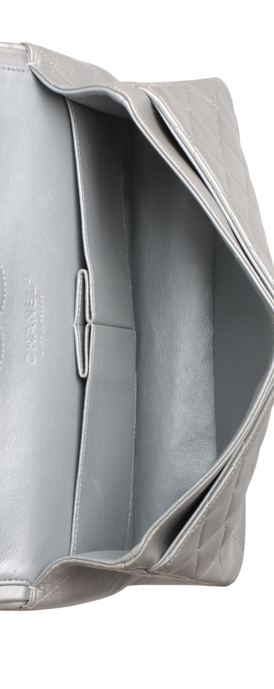 Descrição do Material: Couro lambskin prateado com acabamento matelassê