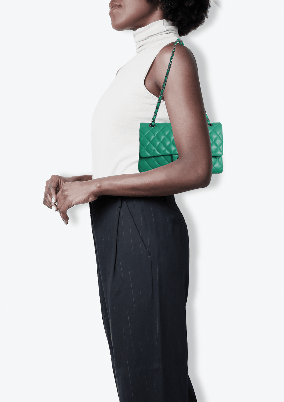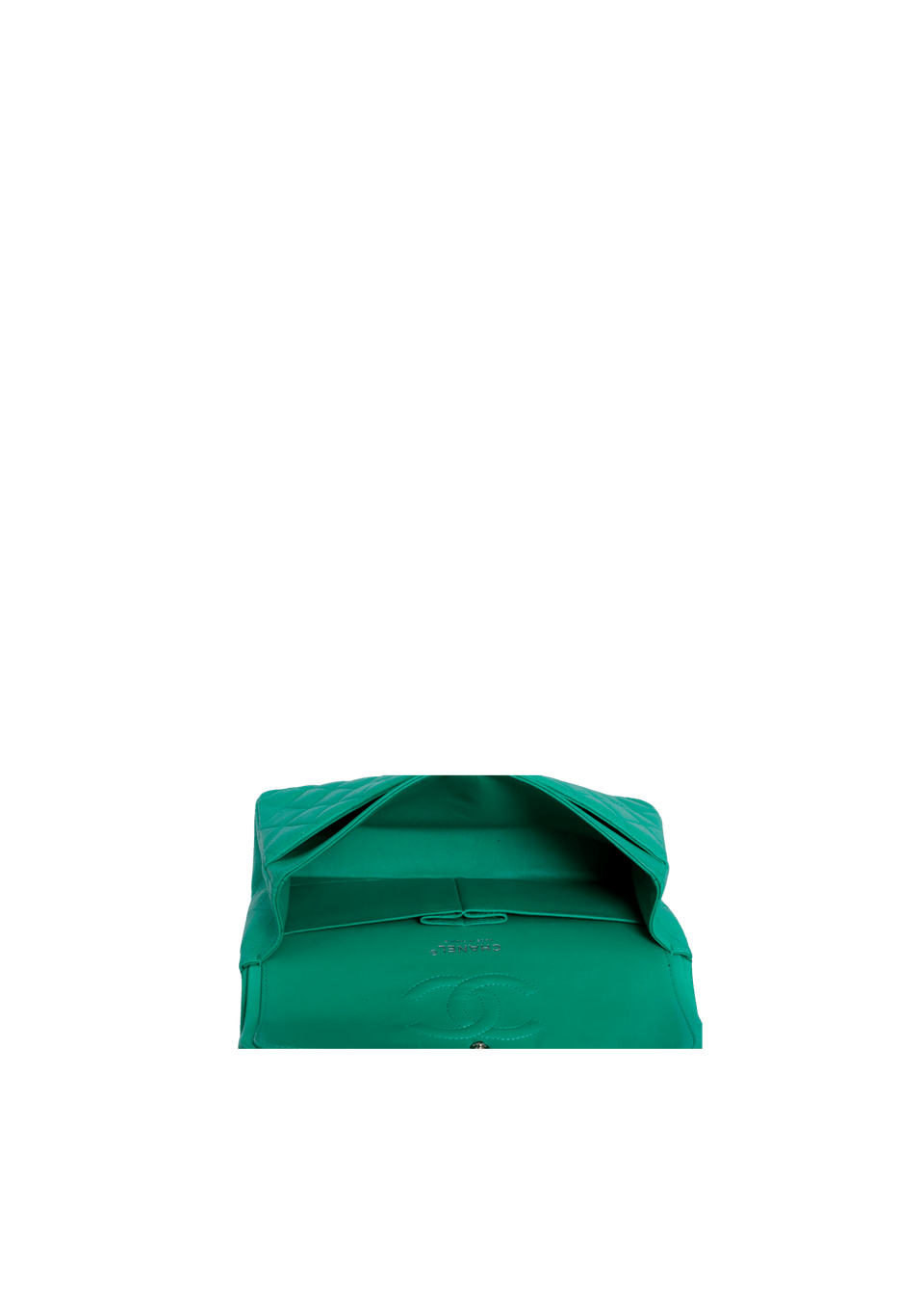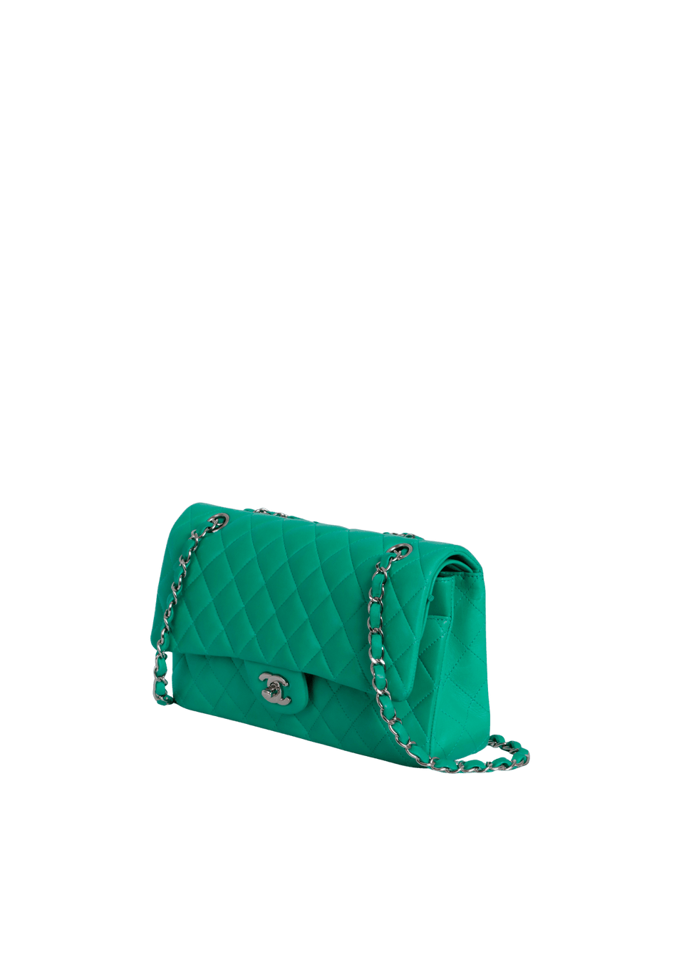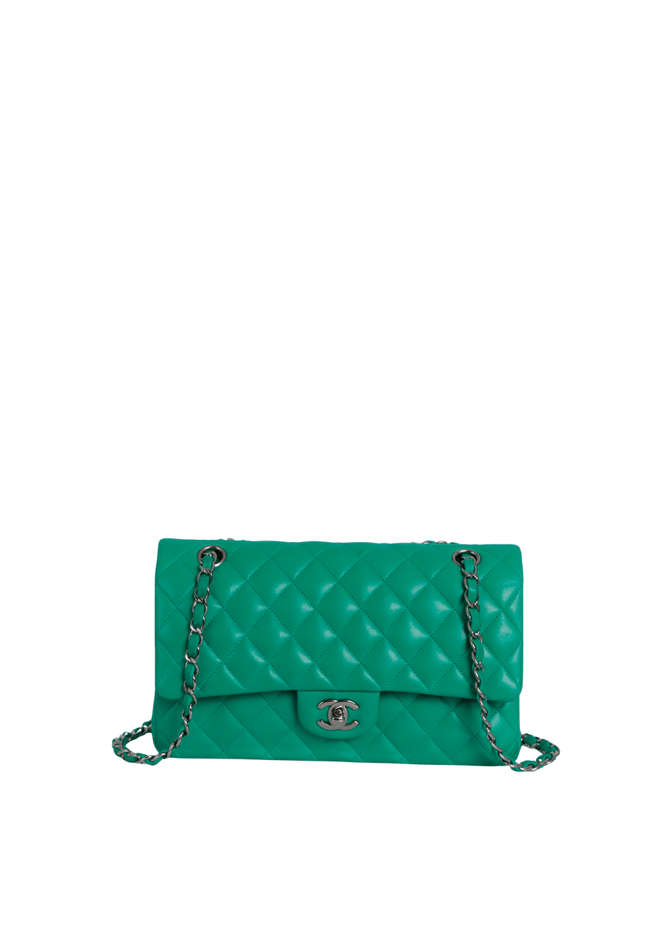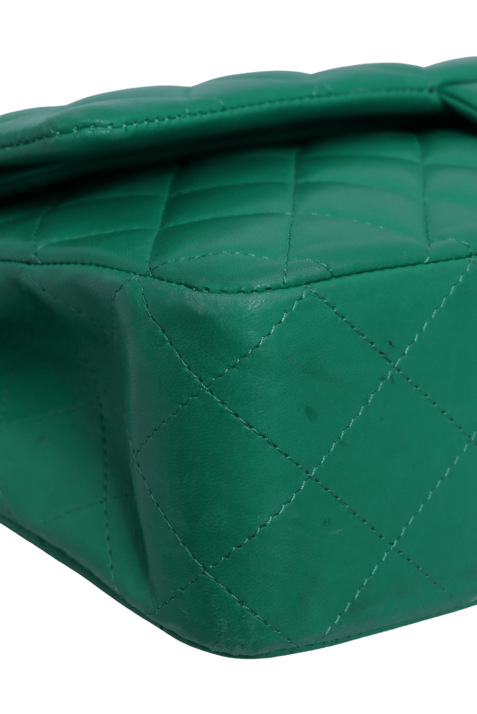- Couro lambskin verde com acabamento matelassê;