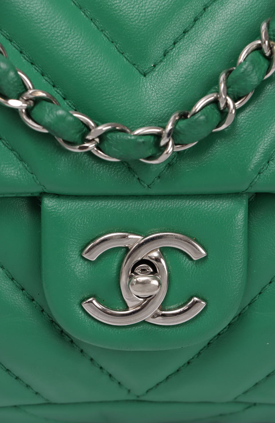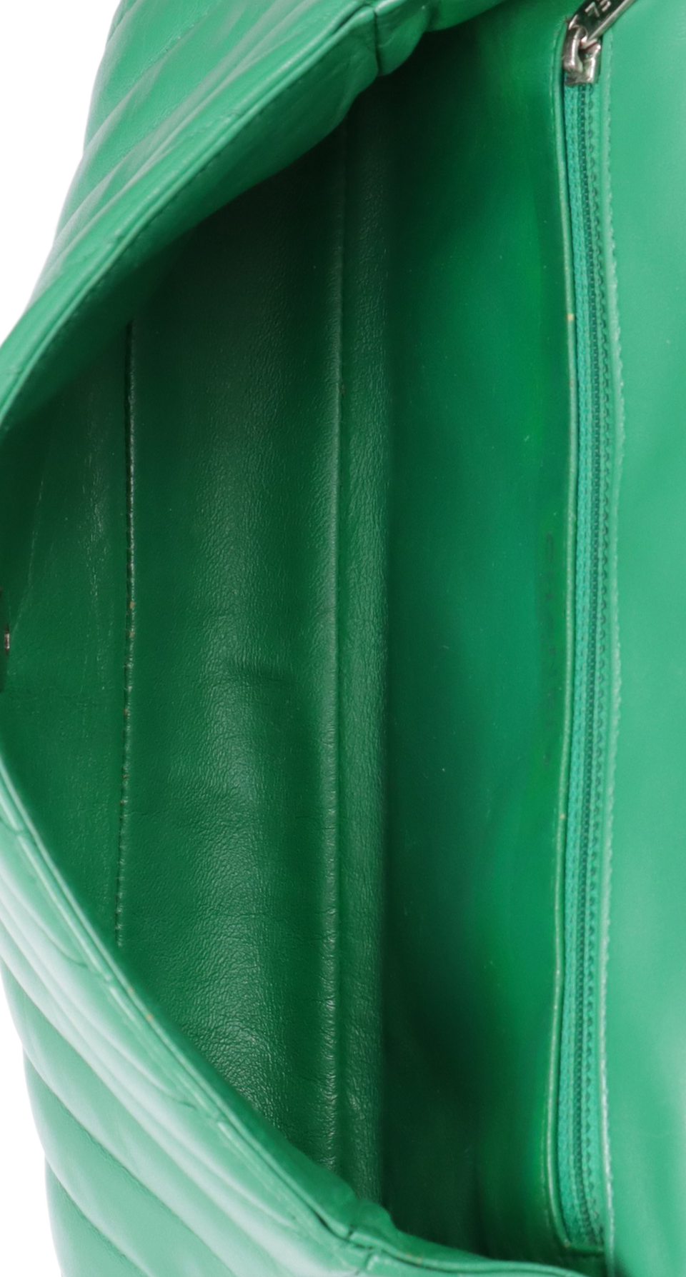 Descrição do Material: Couro lambskin verde com acabamento matelassê