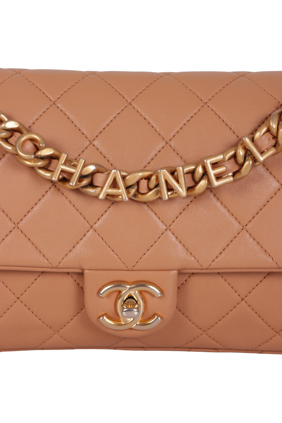 Descrição do Material: Couro calfskin bege com acabamento matelassê