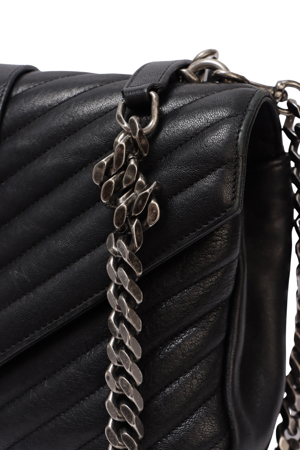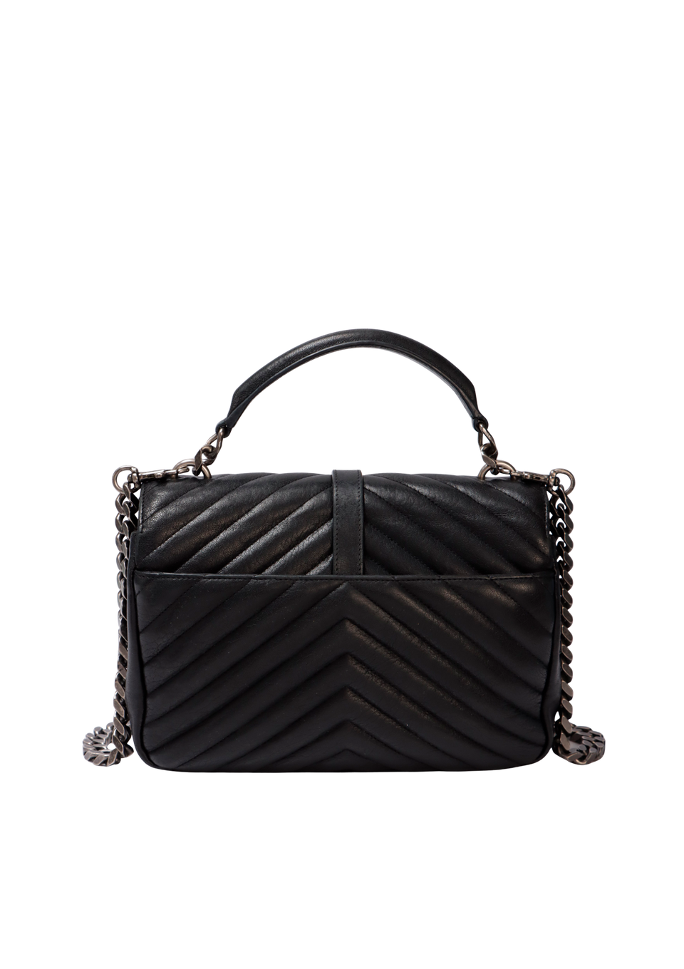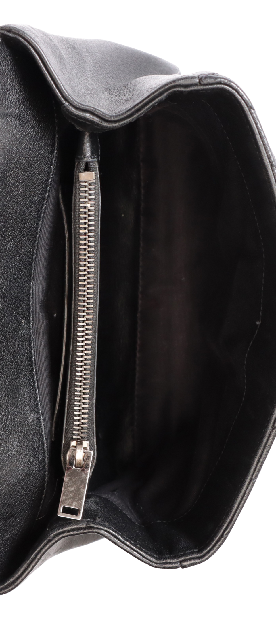 Descrição do Material: Couro lambskin preto com acabamento matelassê chevron
