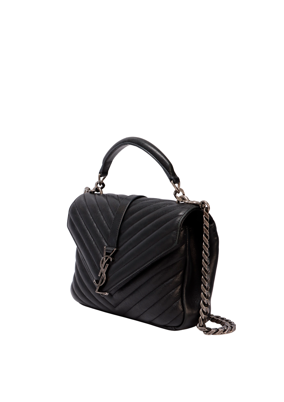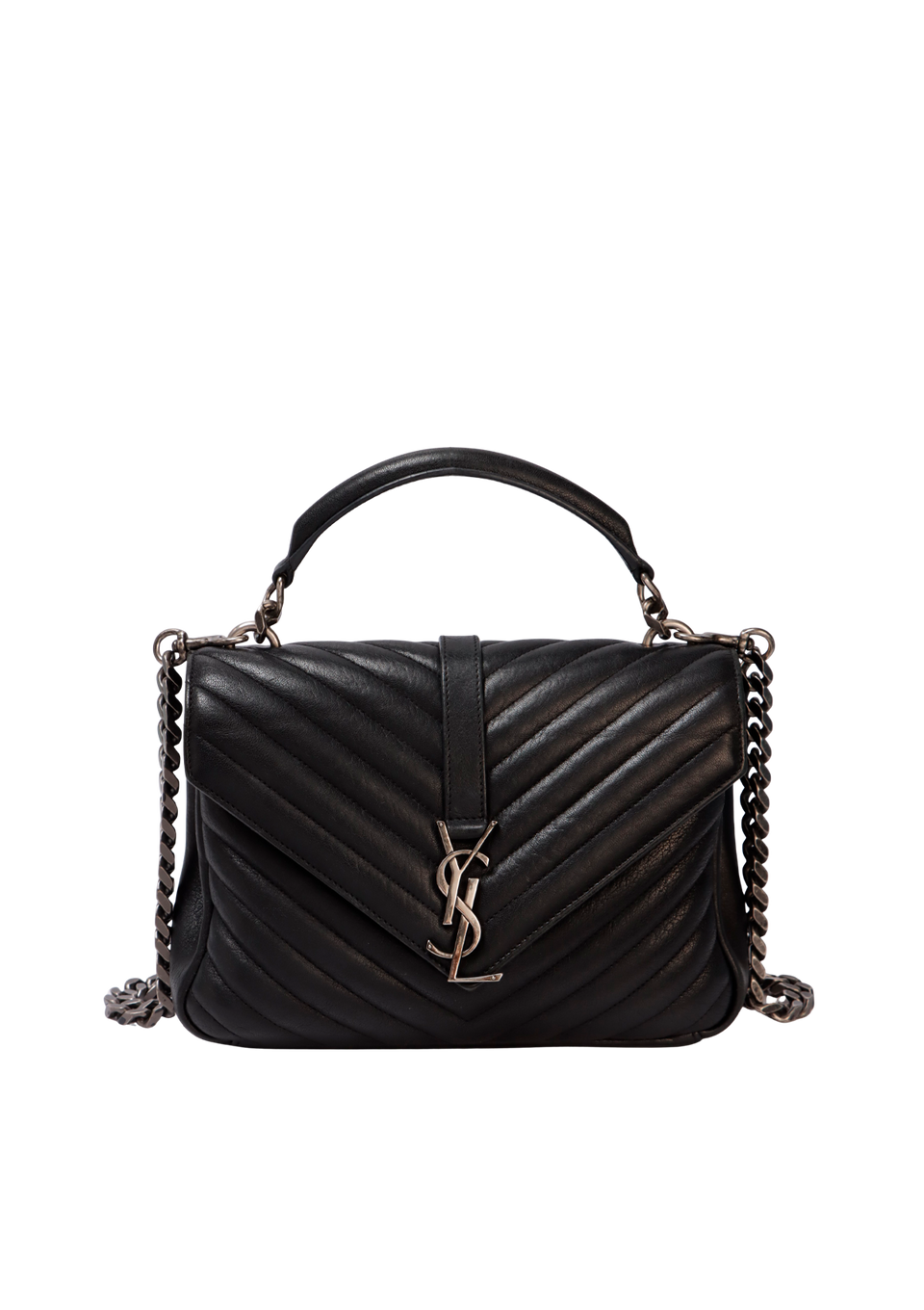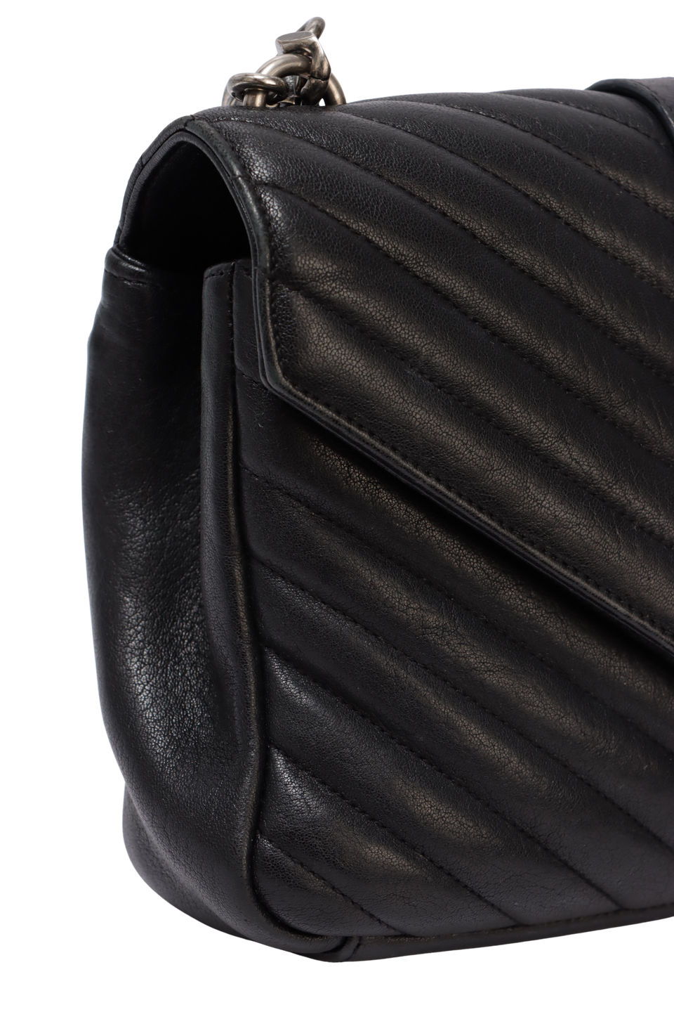 Descrição do Material: Couro lambskin preto com acabamento matelassê chevron