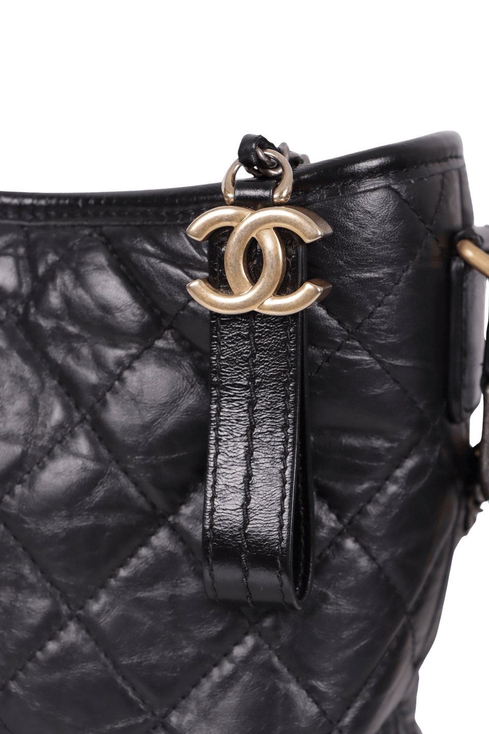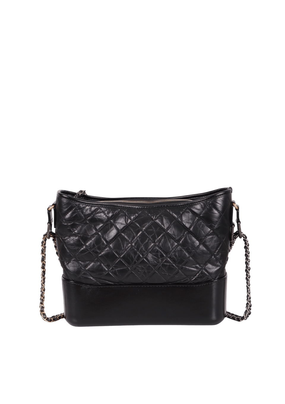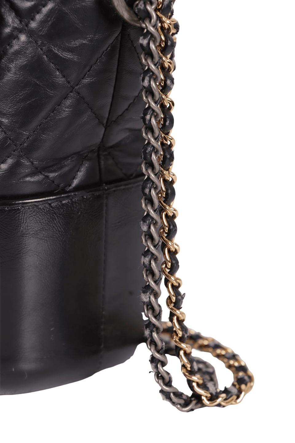 Descrição do Material: Couro lambskin preto com acabamento crinkled e matelassê e detalhes em couro lambskin preto