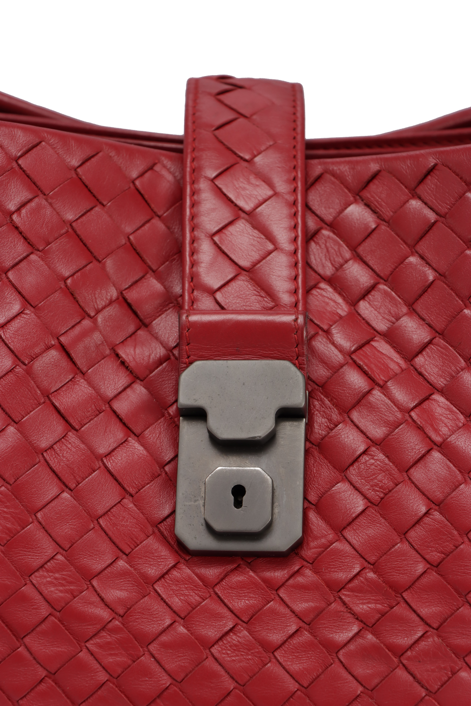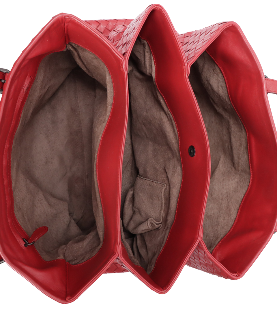 Descrição do Material: Couro lambskin vermelho com acabamento intrecciato