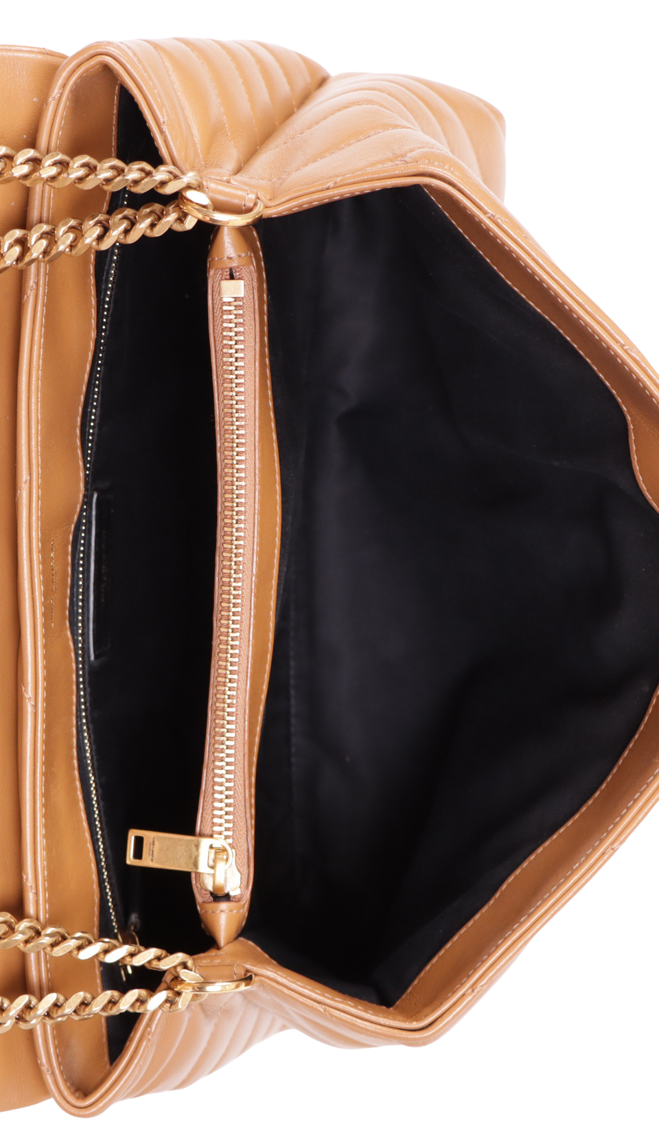 Descrição do Material: Couro calfskin bege com acabamento matelassê