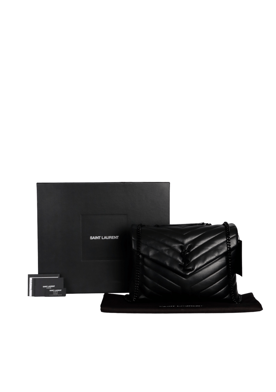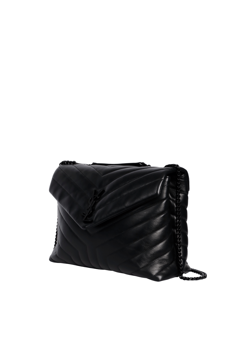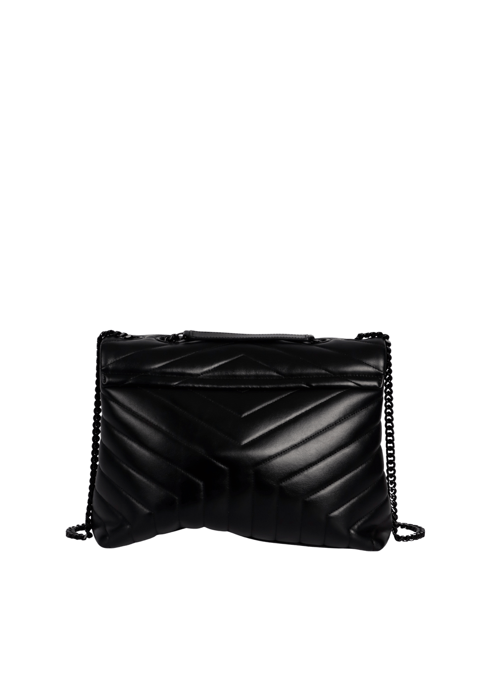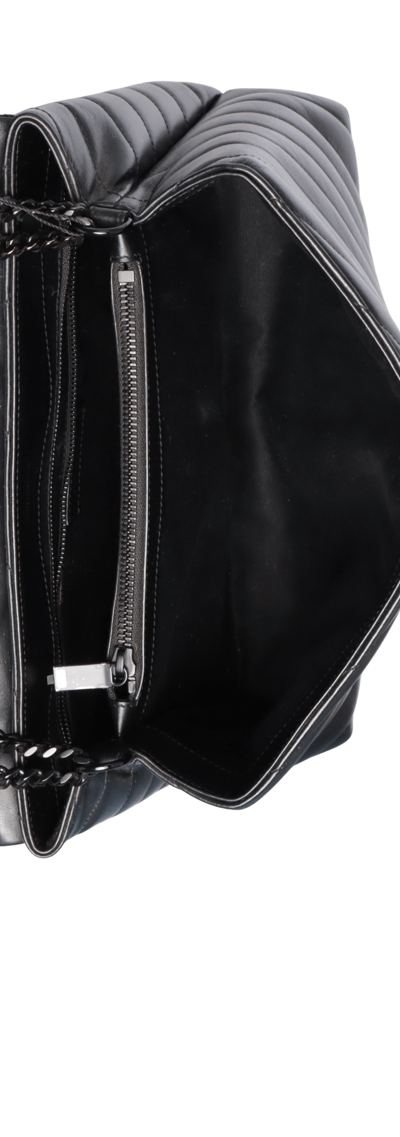 Descrição do Material: Couro calfskin preto com acabamento matelassê chevron Y