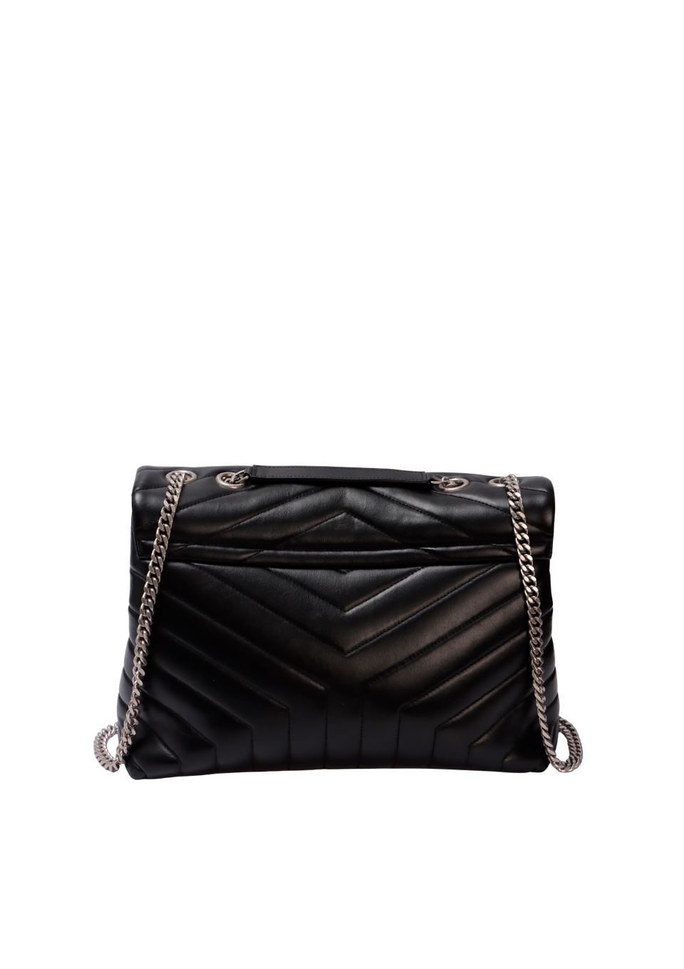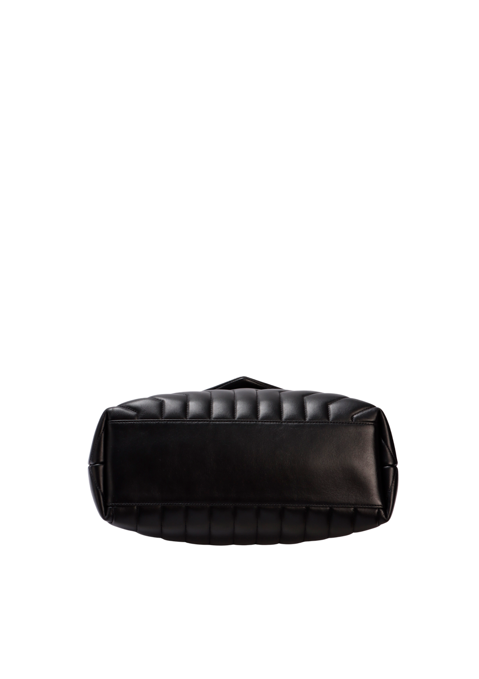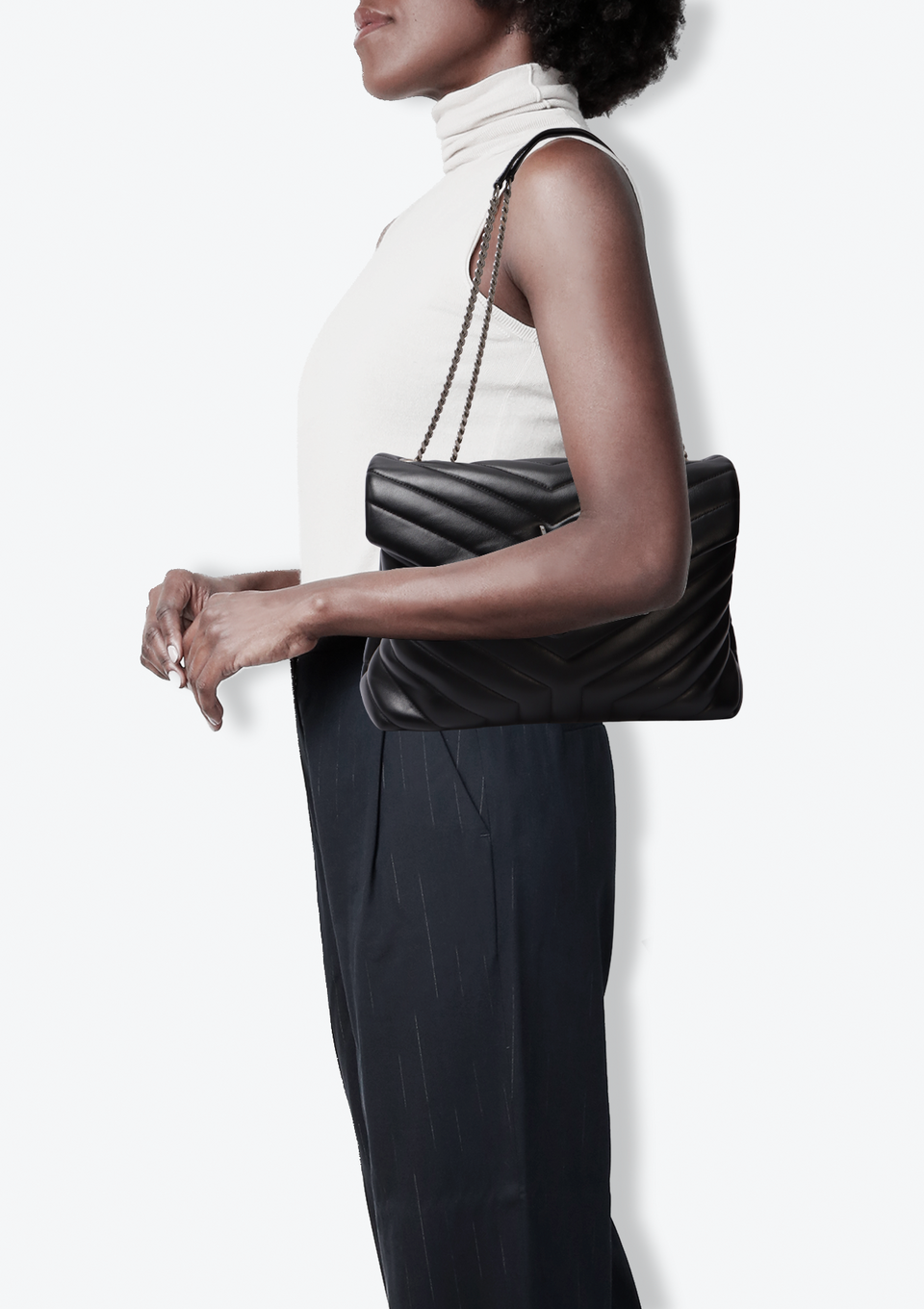 Descrição do Material: Couro calfskin preto com acabamento matelassê chevron Y
