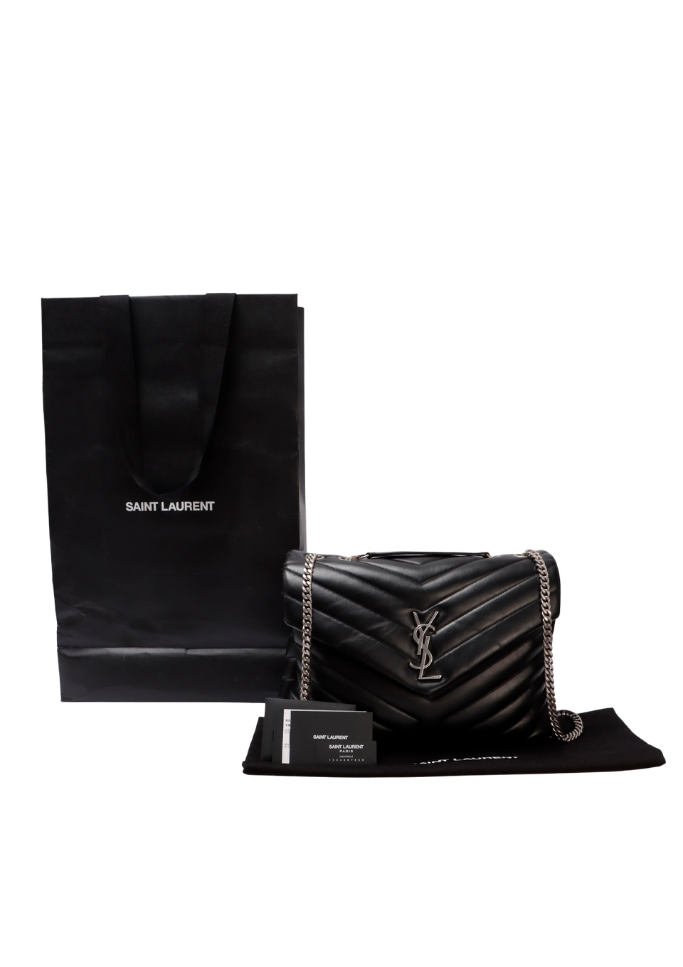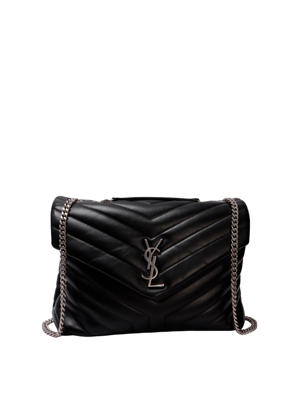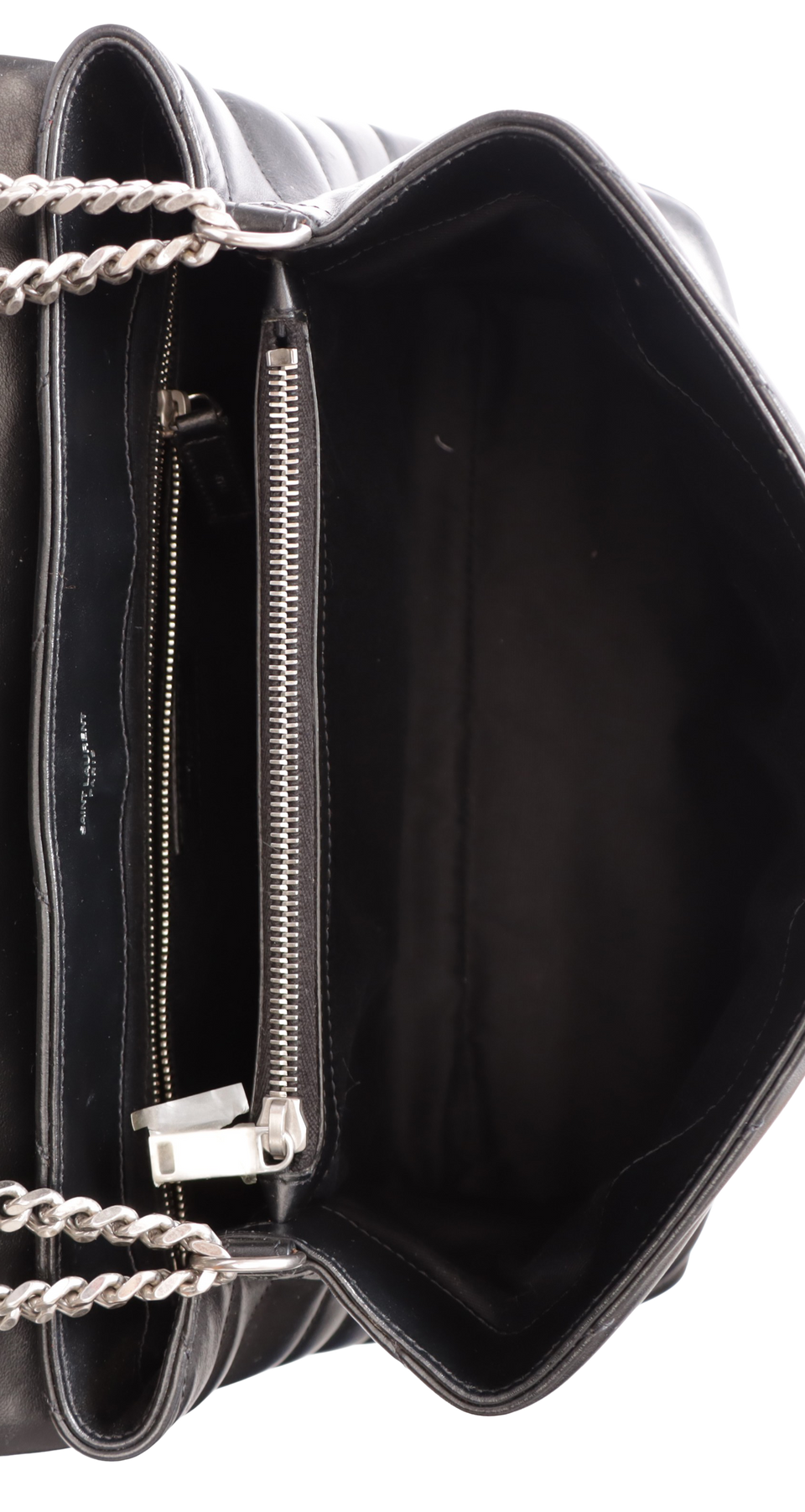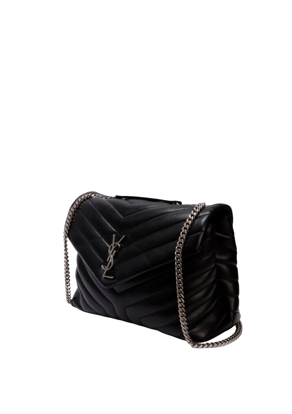 Descrição do Material: Couro calfskin preto com acabamento matelassê chevron Y