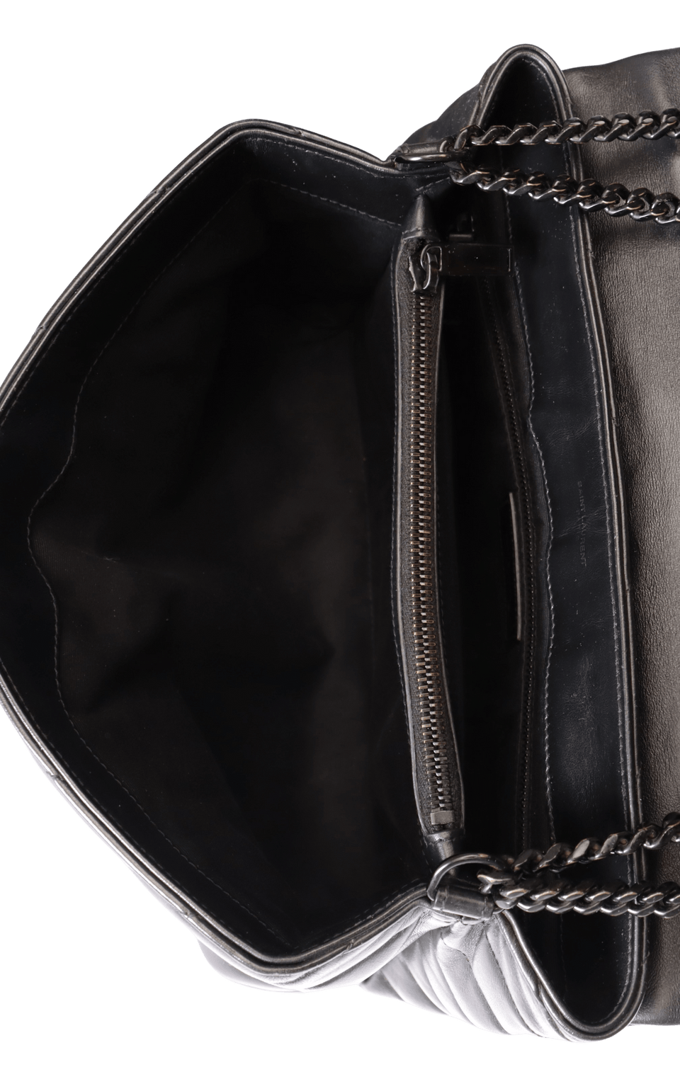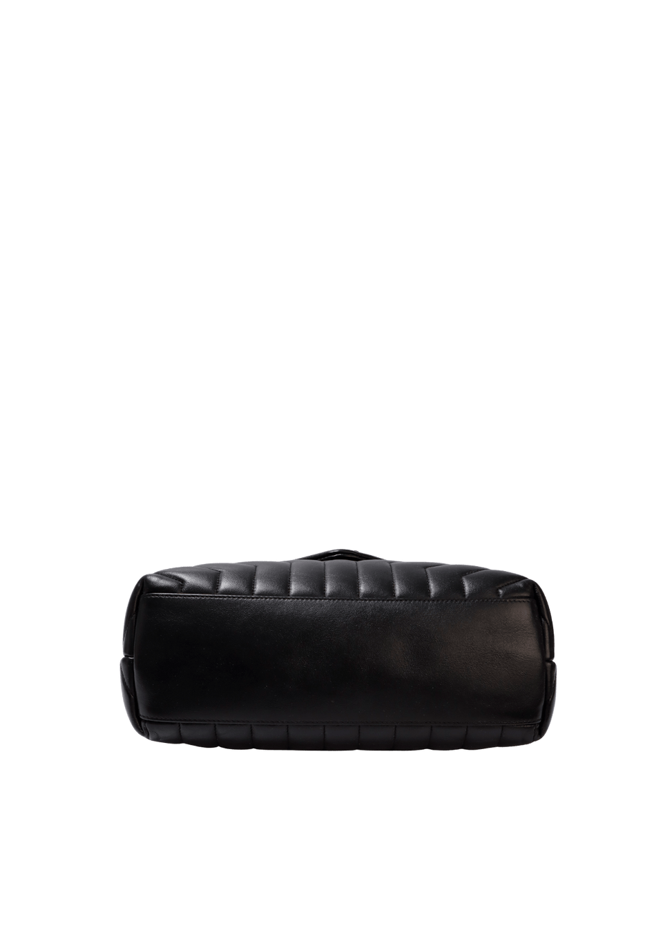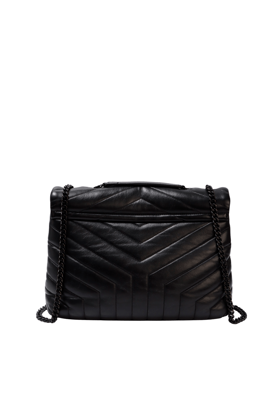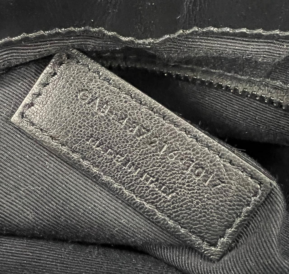 Descrição do Material: Couro calfskin preto com acabamento matelassê chevron Y