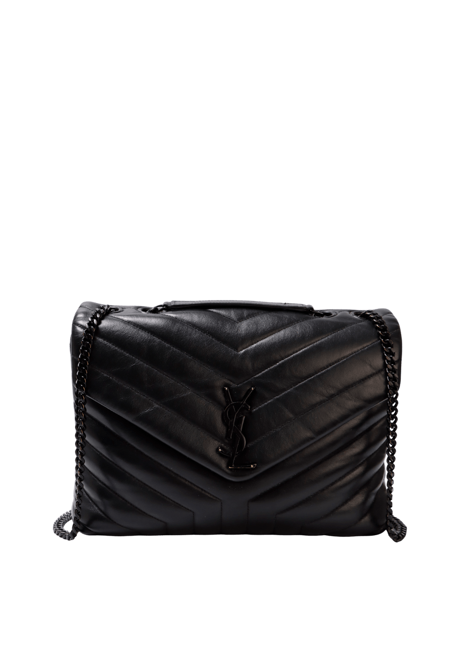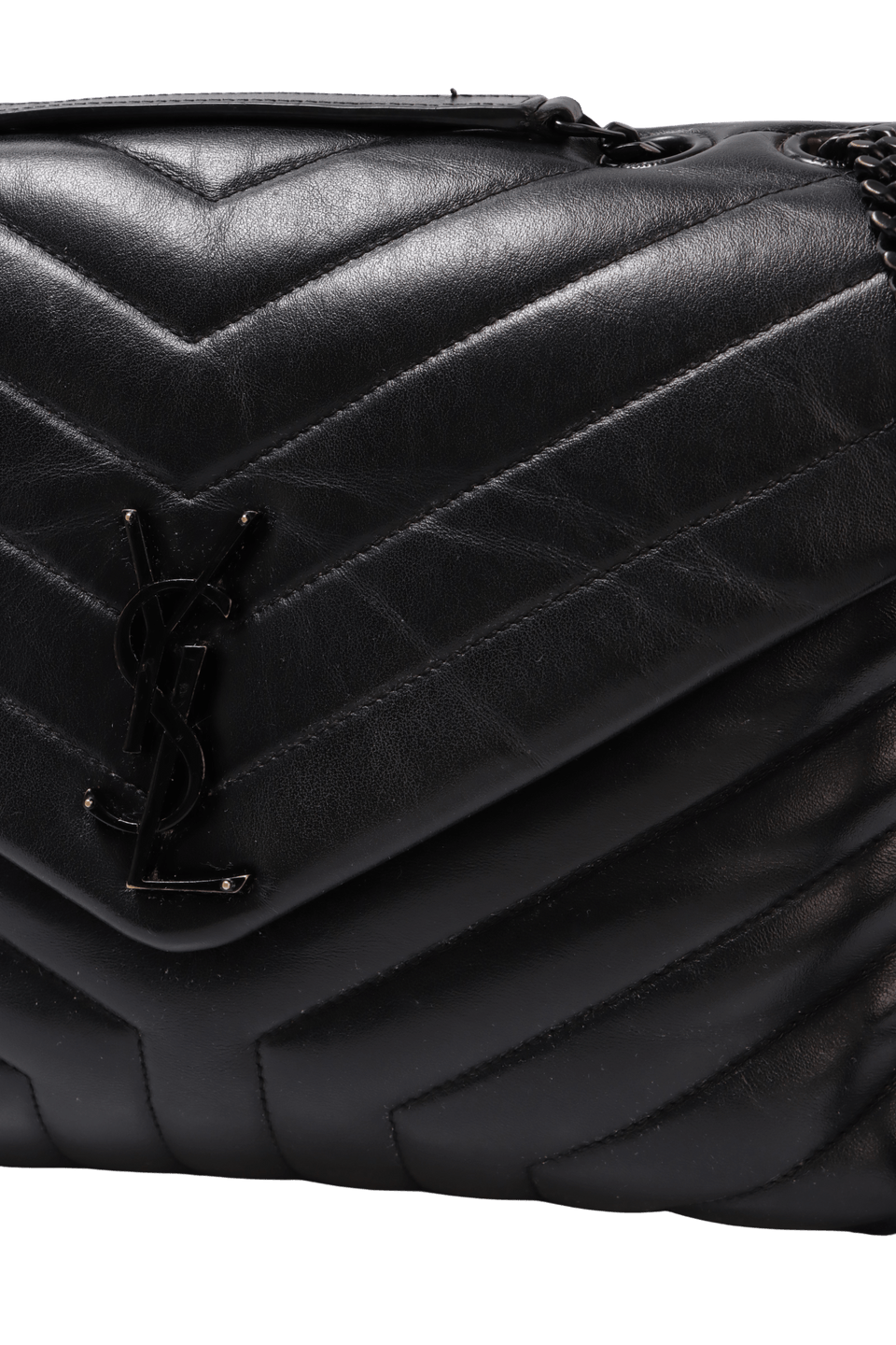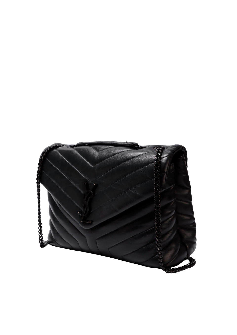 Descrição do Material: Couro calfskin preto com acabamento matelassê chevron Y