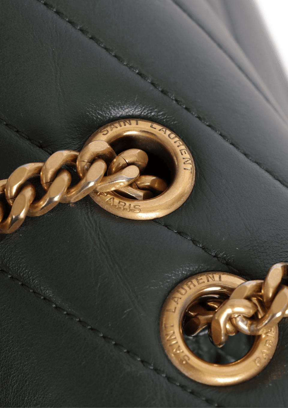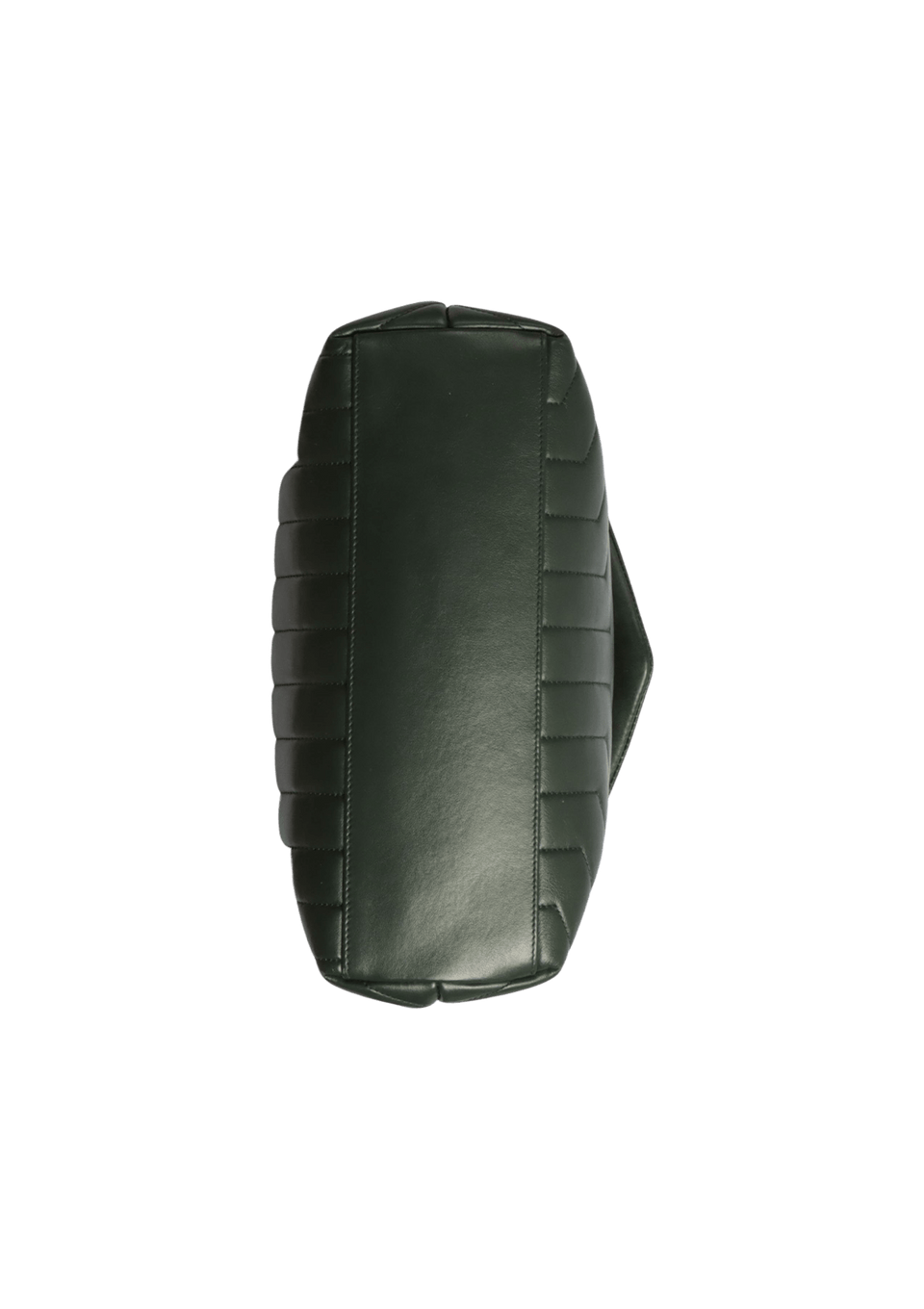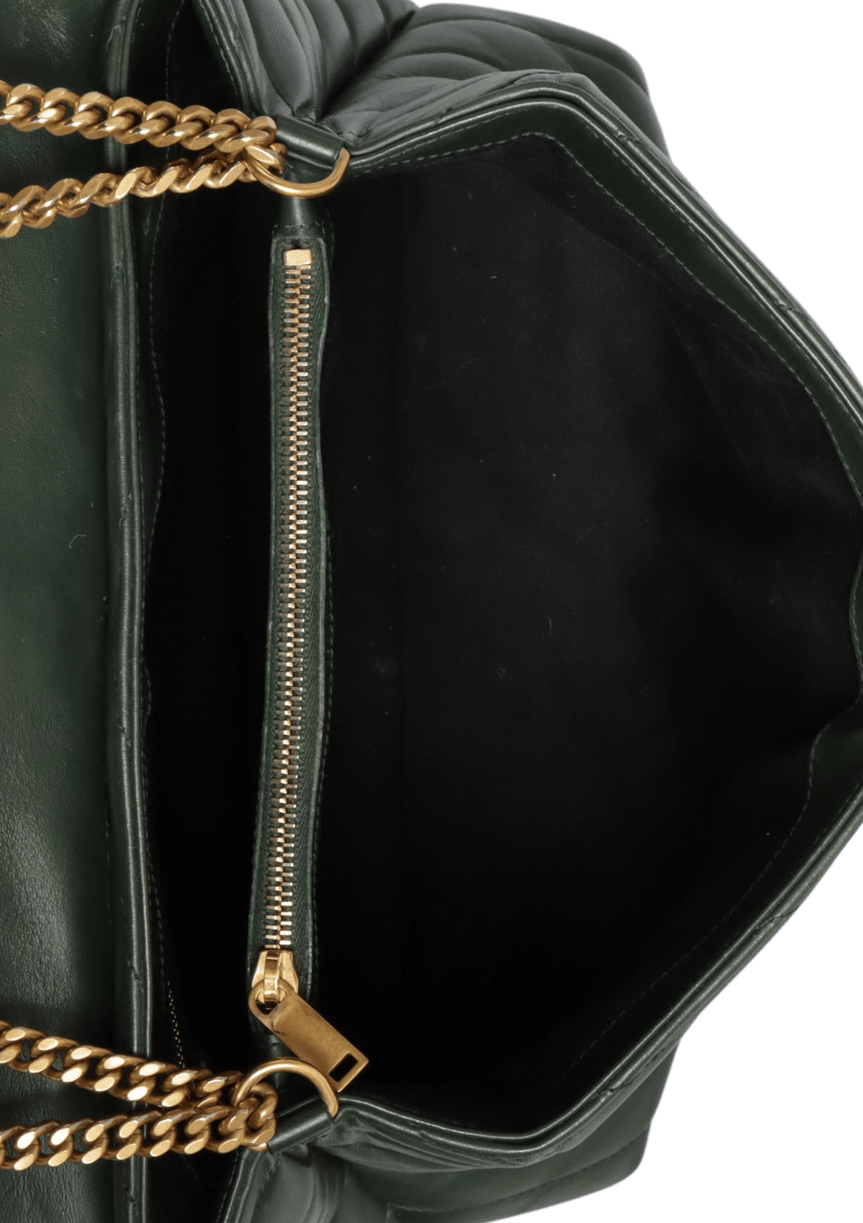 - Couro calfskin verde com acabamento matelassê chevron Y;