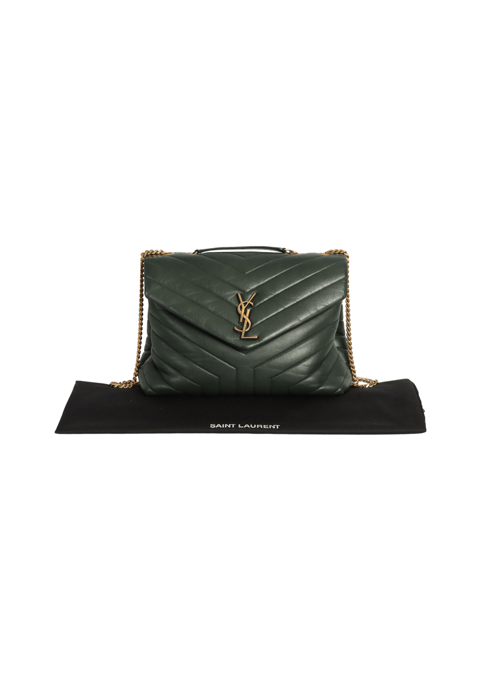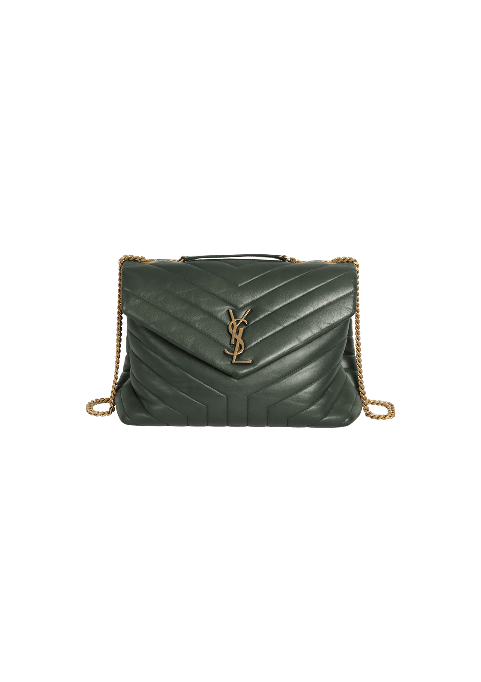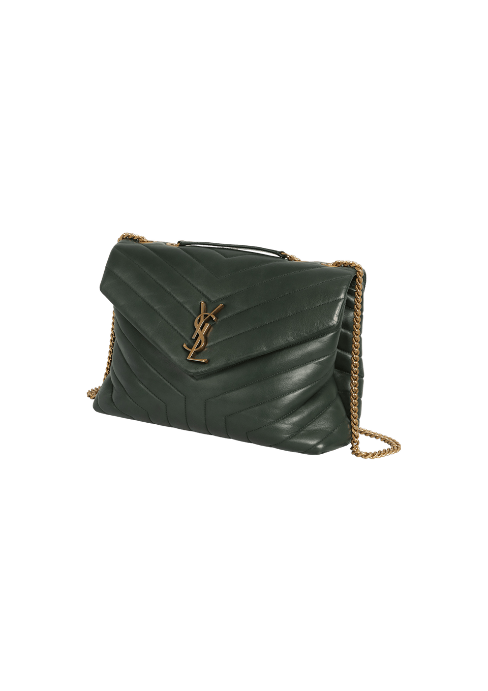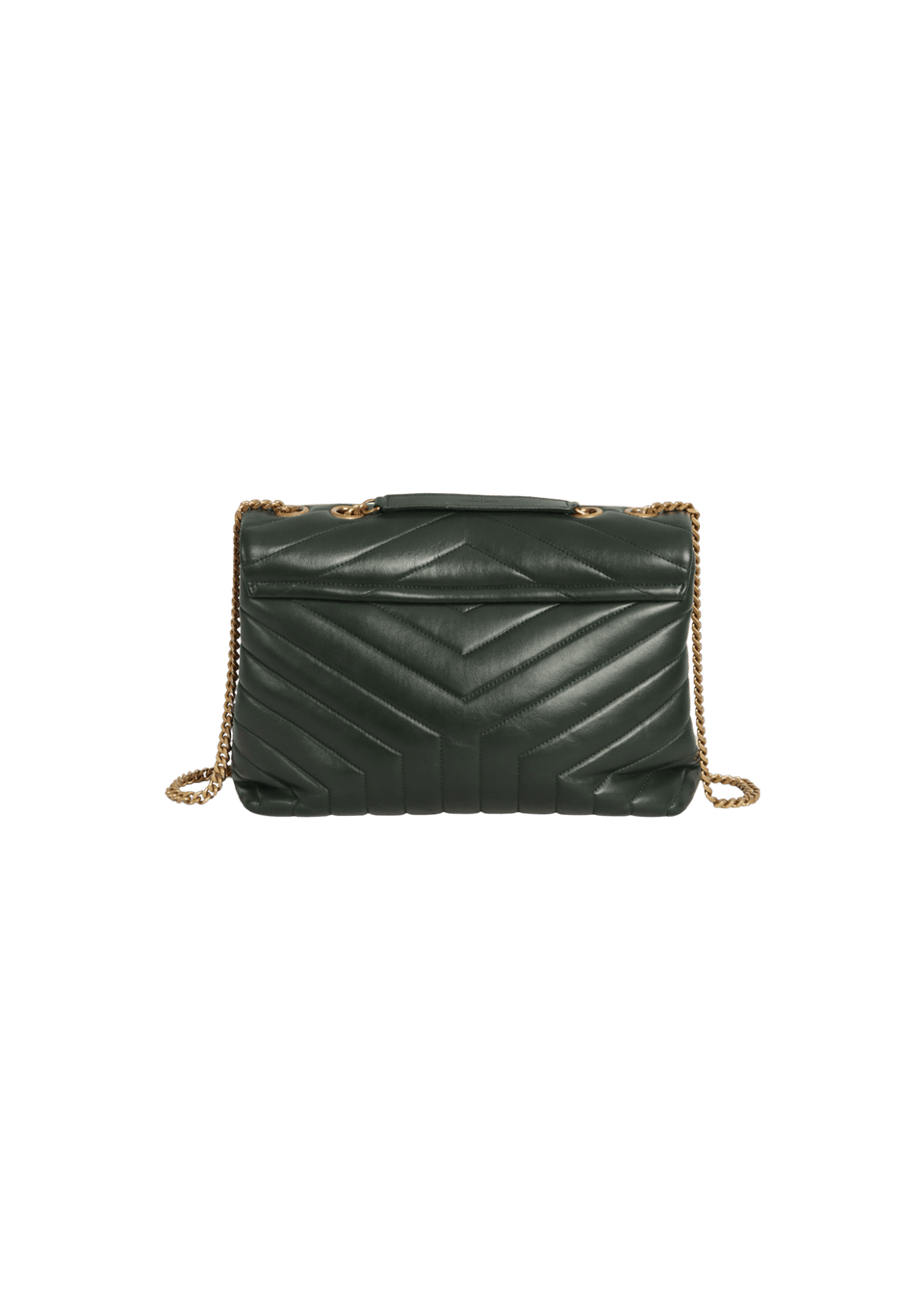 - Couro calfskin verde com acabamento matelassê chevron Y;