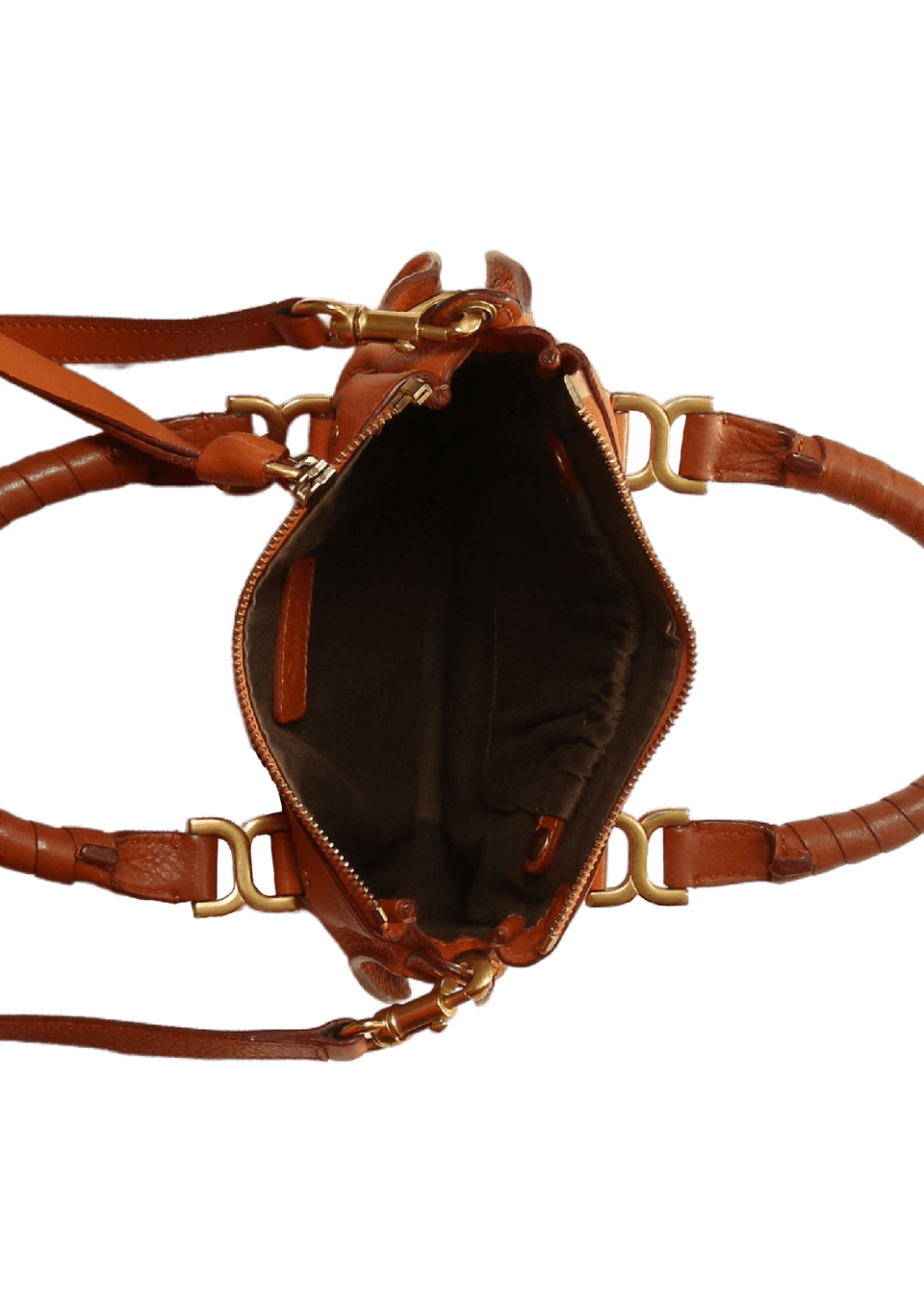 - Compartimento único com um bolso interno aberto e um bolso externo por aba