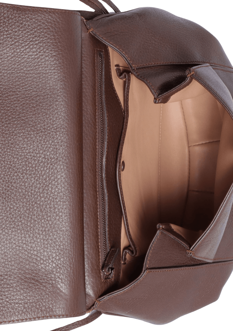 - Compartimento único com dois bolsos internos, sendo um fechado por cursor e um fechado por aba com botão de pressão;