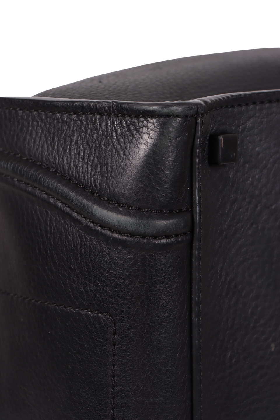 Bom, com aparência de usado. Apresenta leves deformidades pela estrutura, especialmente no canto inferior esquerdo frontal e nos cantos inferiores de trás, pequenas marcas de uso e descolorações nas ferragens dos puxadores dos cursores e nos detalhes do fecho, leves marcas de uso e desgastes pelo couro, principalmente nos cantos da base, na parte inferior frontal, alças e na parte central de trás, pequenas fissuras nas selagens das alças, nos cantos da base e nas extremidades superiores laterais e leves marcas de uso, manchas esbranquiçadas e desgastes pela camurça interna.