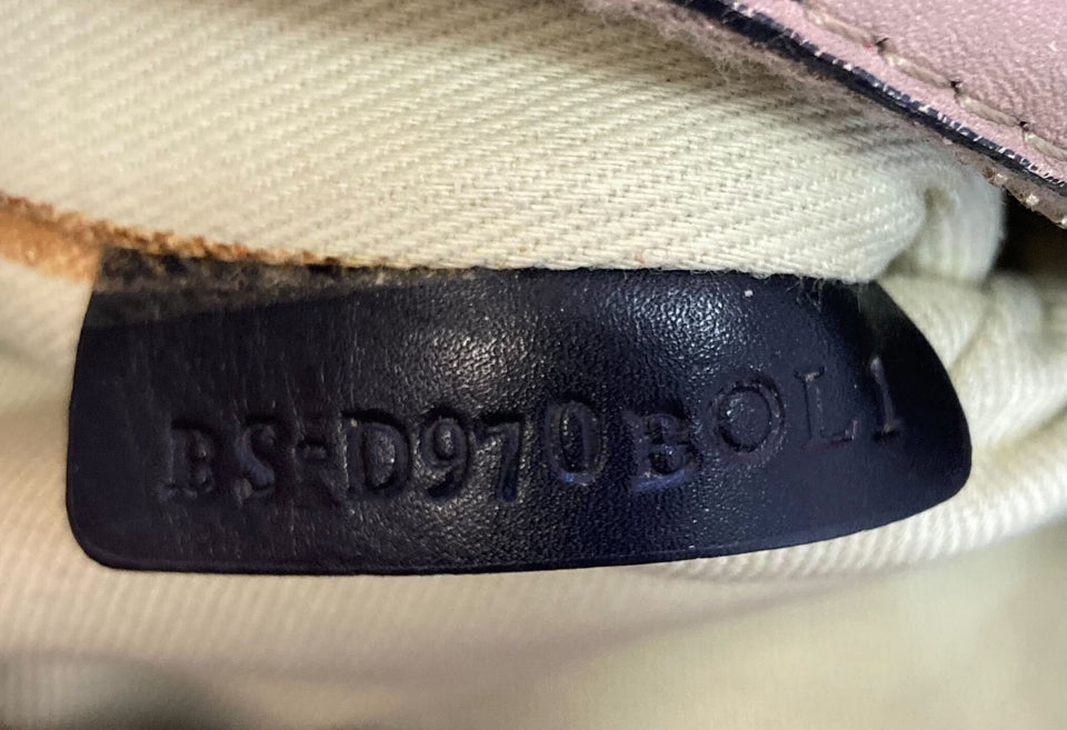 Condição: Regular, faltando item. Ausência da alça longa de ombro, acabamento das alças craqueladas, desbotamento dar cor por toda parte externa, desgastes nas ferragens e manchas no forro.