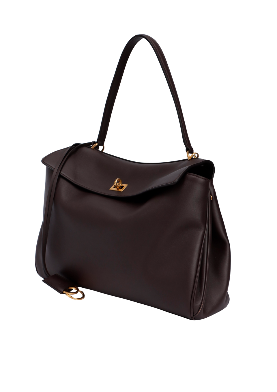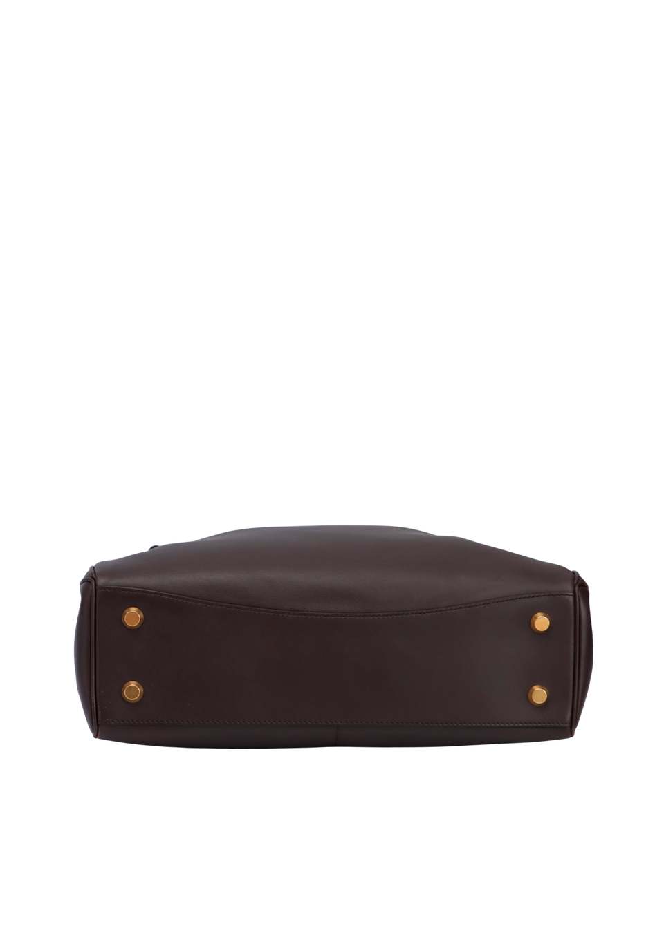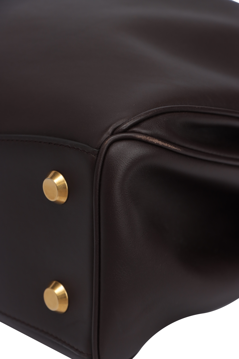 Muito bom, com aparência de seminovo. Apresenta mínimos desgastes pelo couro, especialmente nos cantos inferiores, levíssimas marcas de uso nas ferragens, principalmente nas extremidades do fechamento e levíssimas marcas de uso pela parte interna.