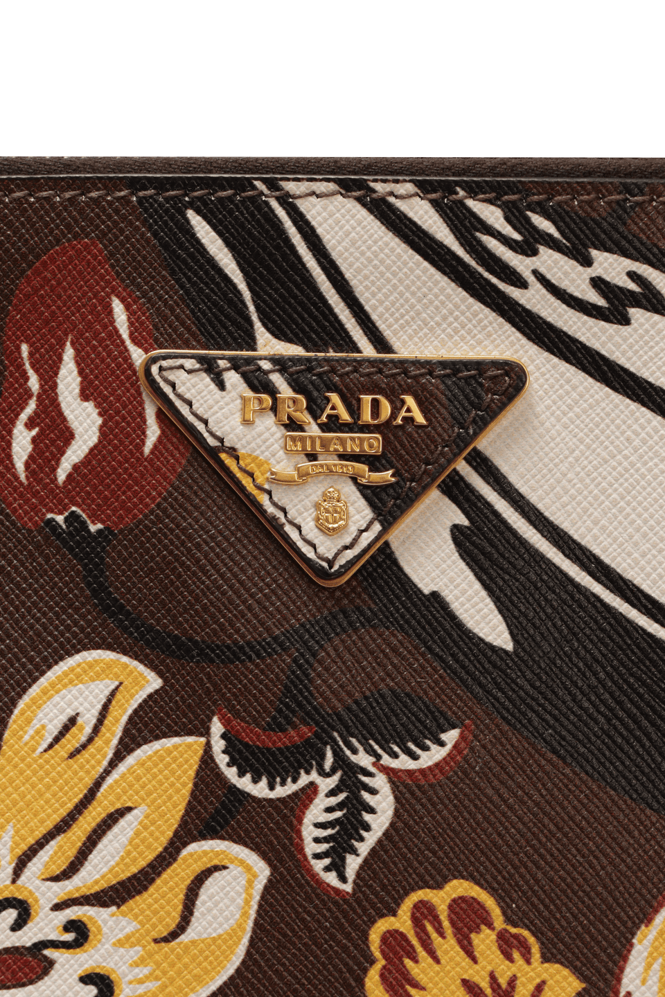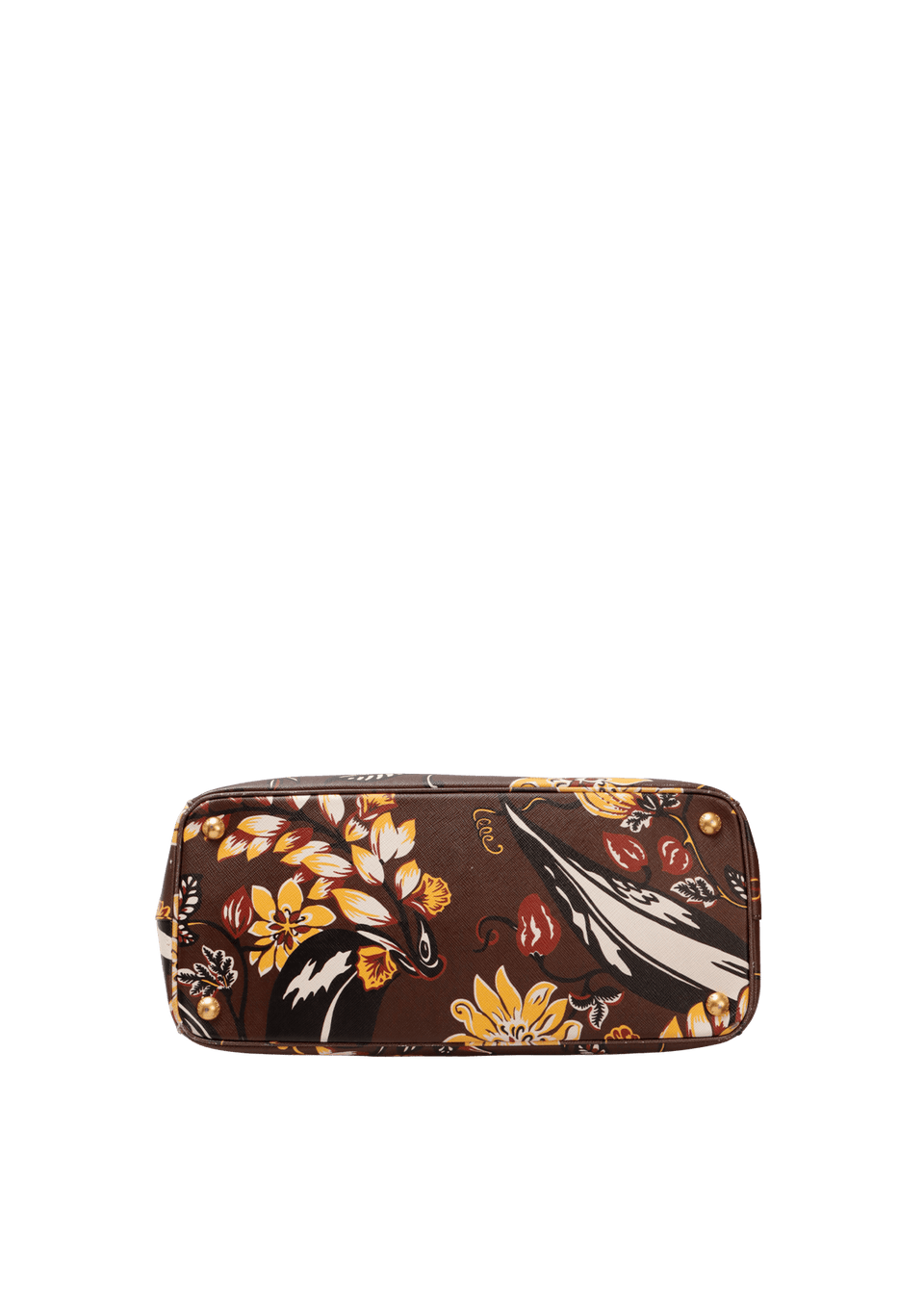 Descrição do Material: Couro calfskin marrom com acabamento Saffiano Lux e estampa floral