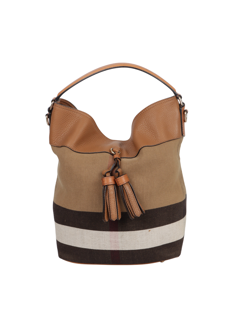 Descrição do Material: Canvas Mega Check com detalhes em couro calfksin bege