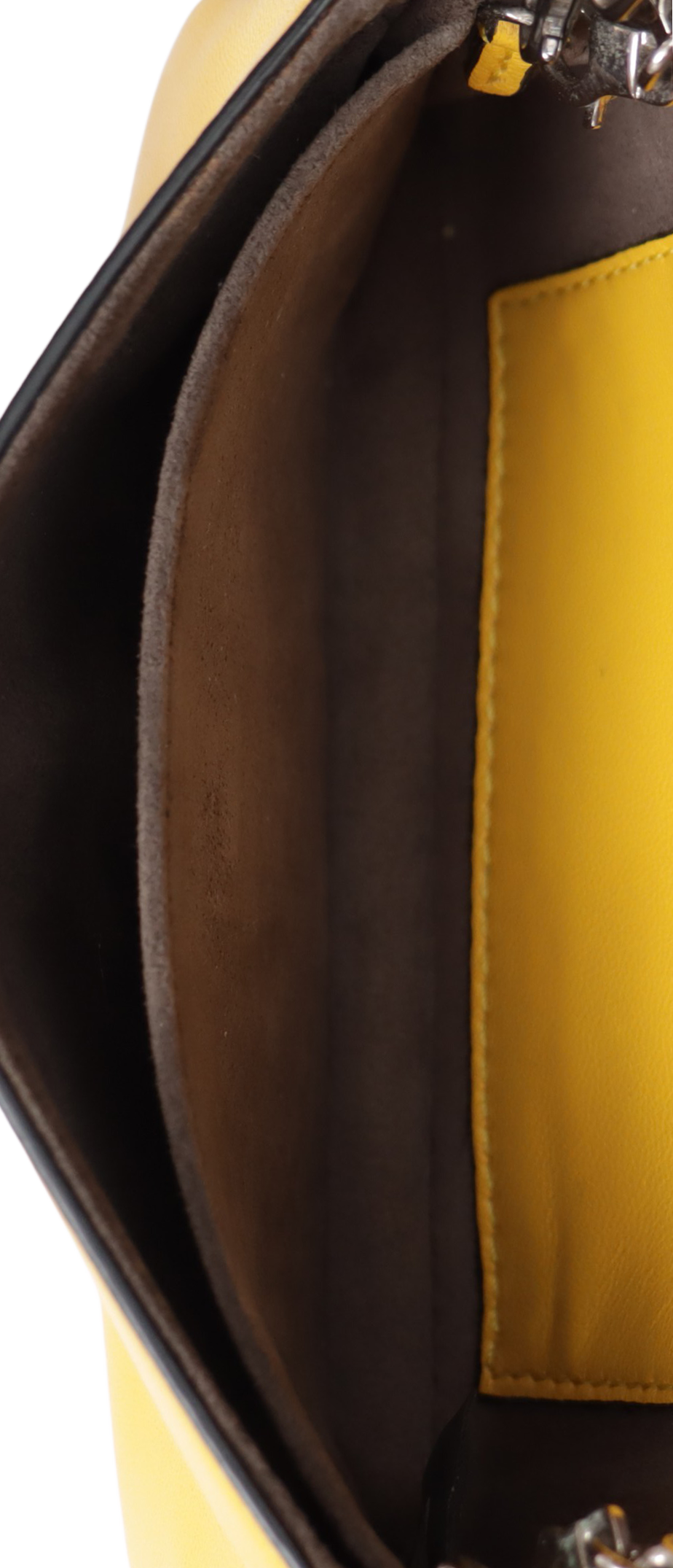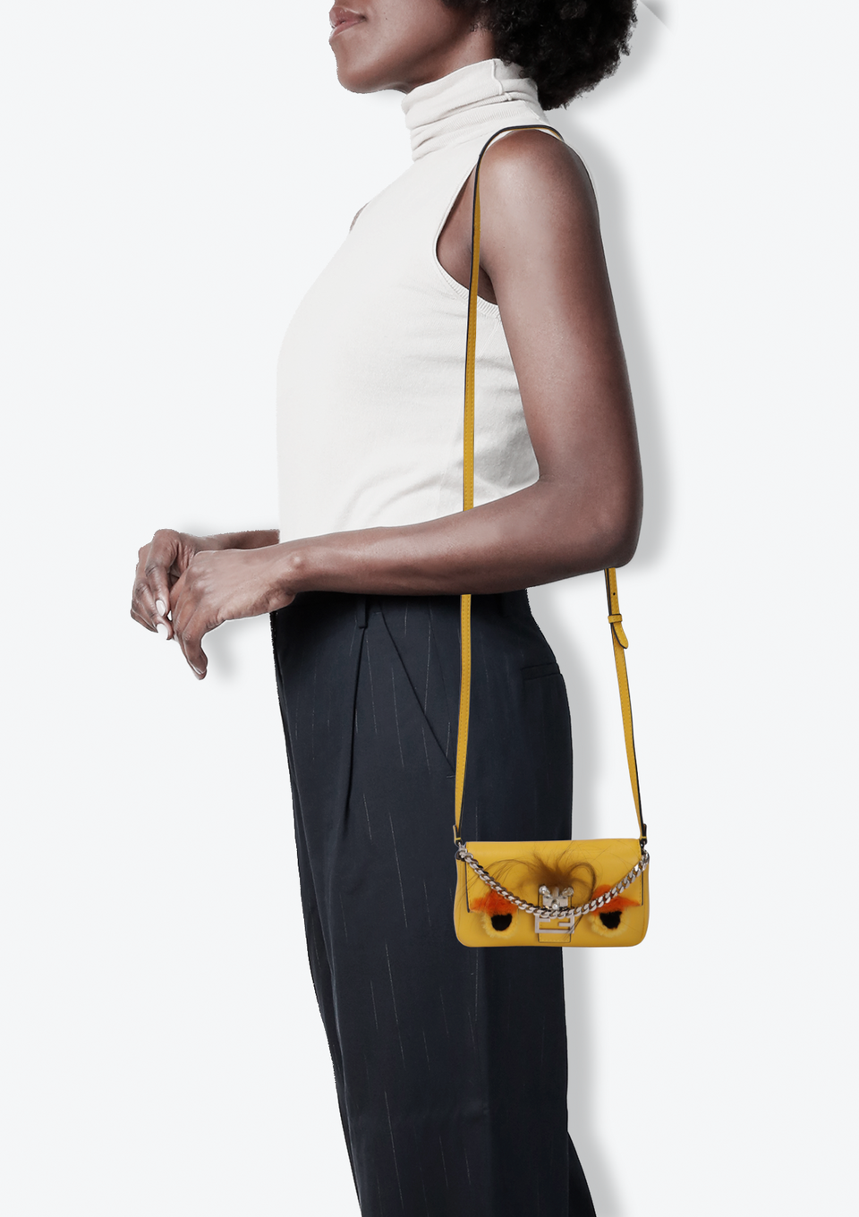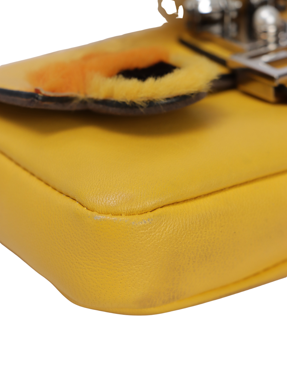 Descrição do Material: Couro calfskin amarelo com pelos coloridos