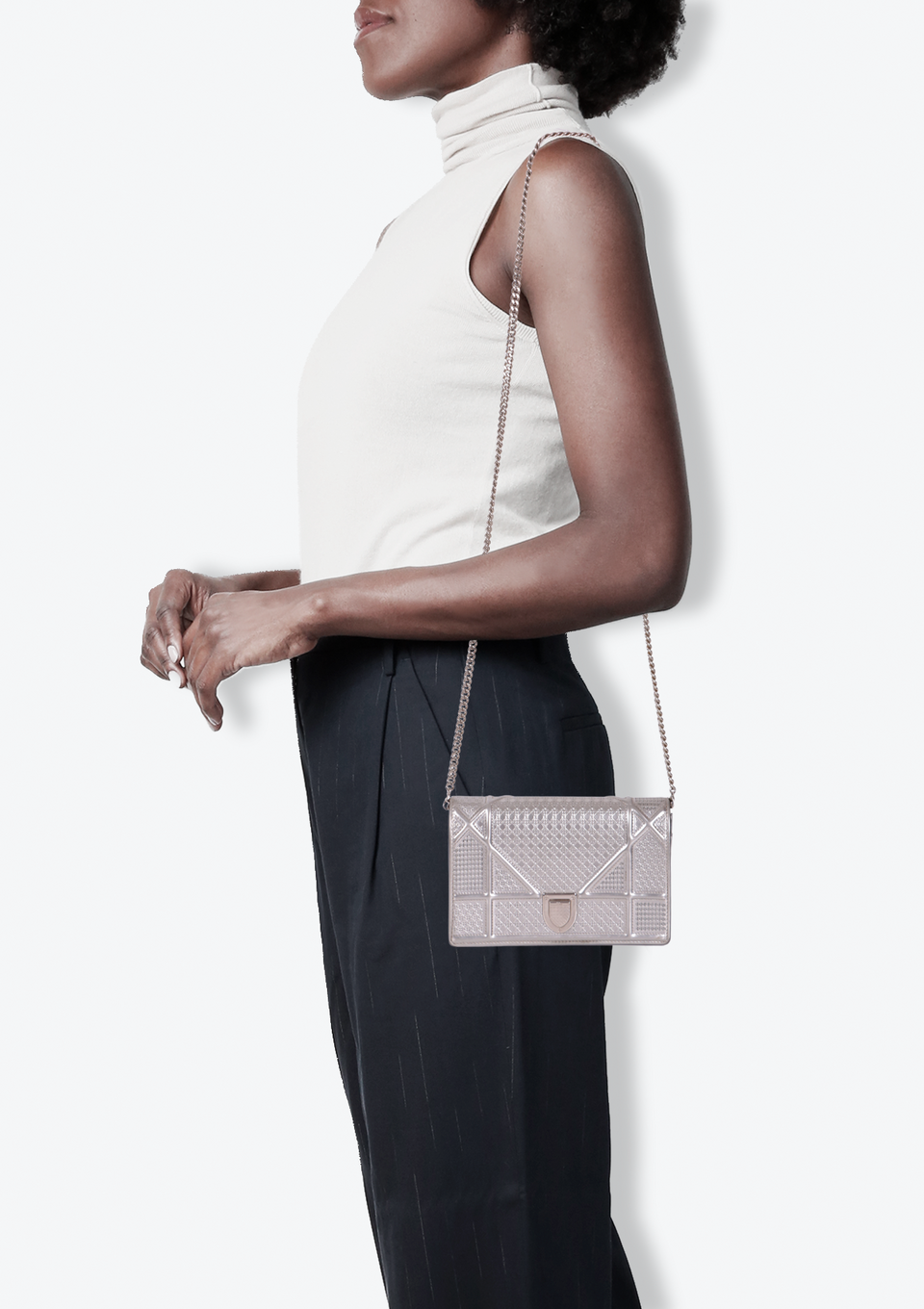 Descrição do Material: Couro calfskin prata com acabamento Micro Cannage