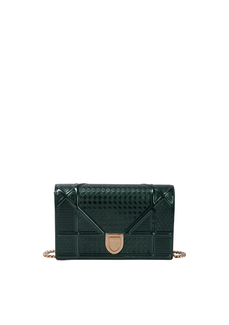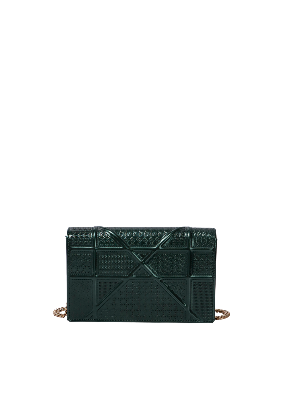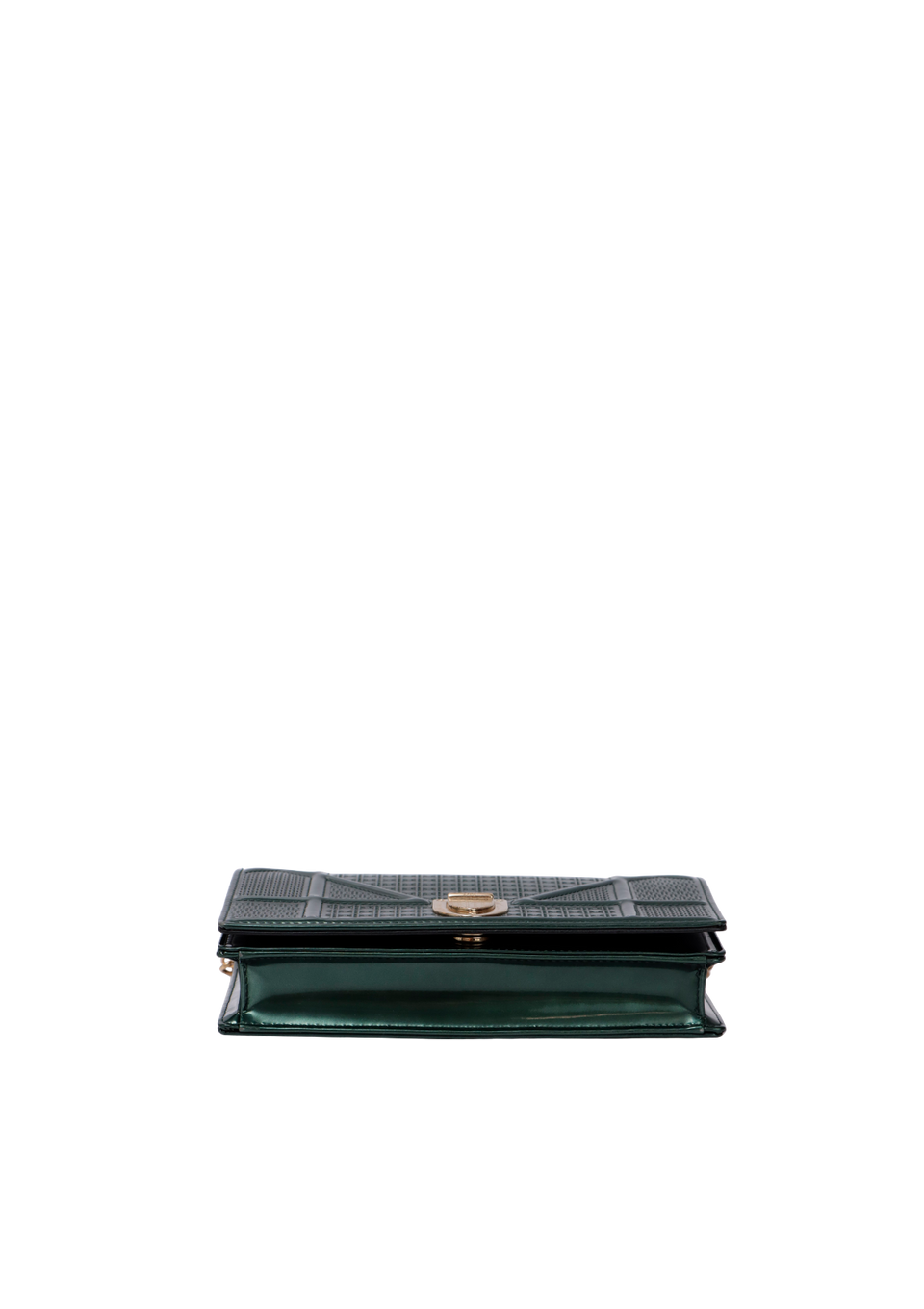 Descrição do Material: Couro calfskin verde com acabamento micro cannage e efeito envernizado