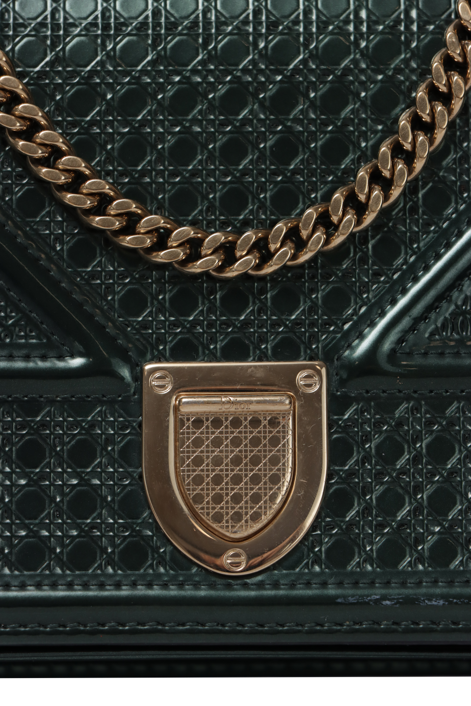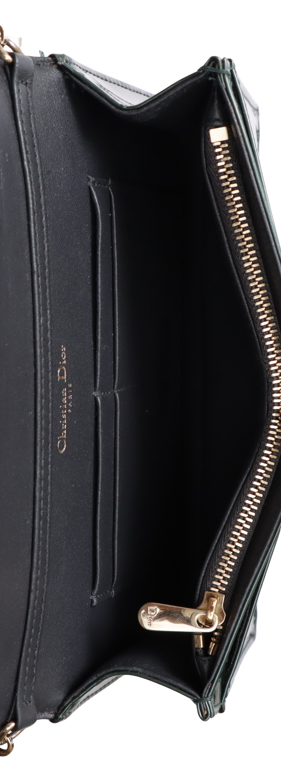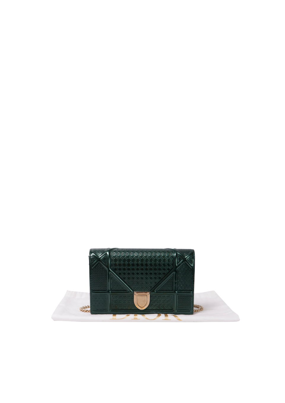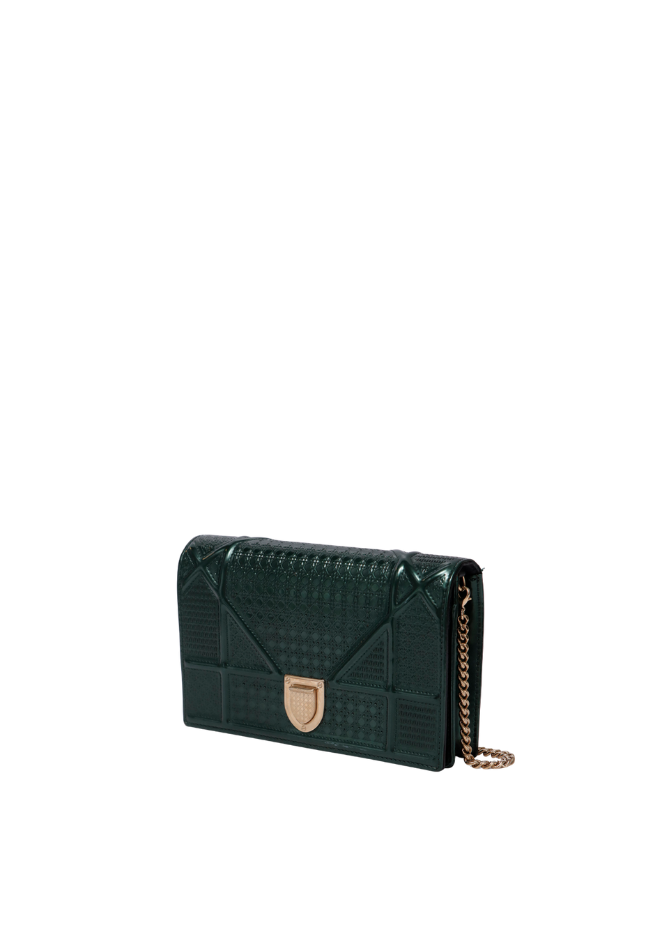 Descrição do Material: Couro calfskin verde com acabamento micro cannage e efeito envernizado