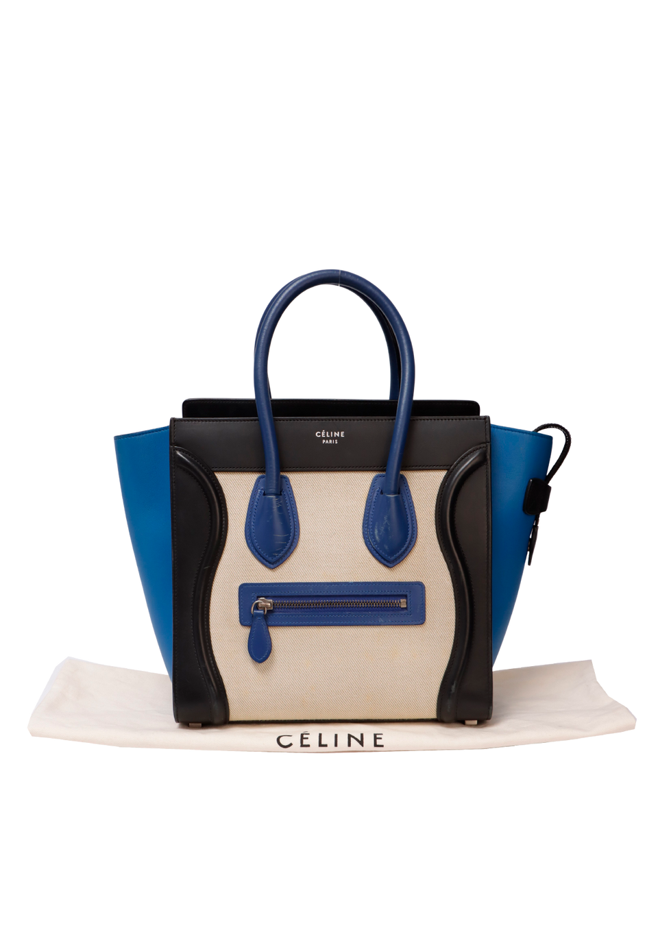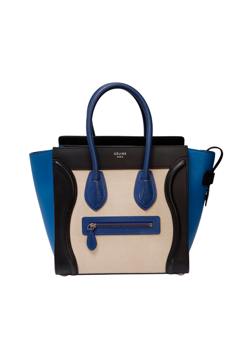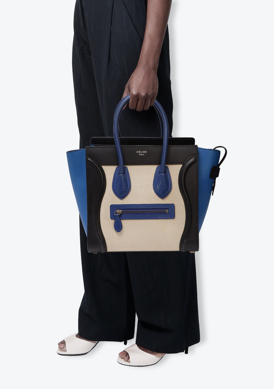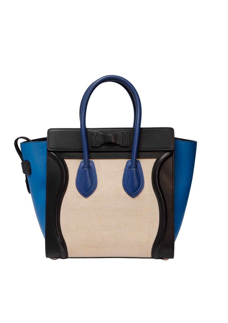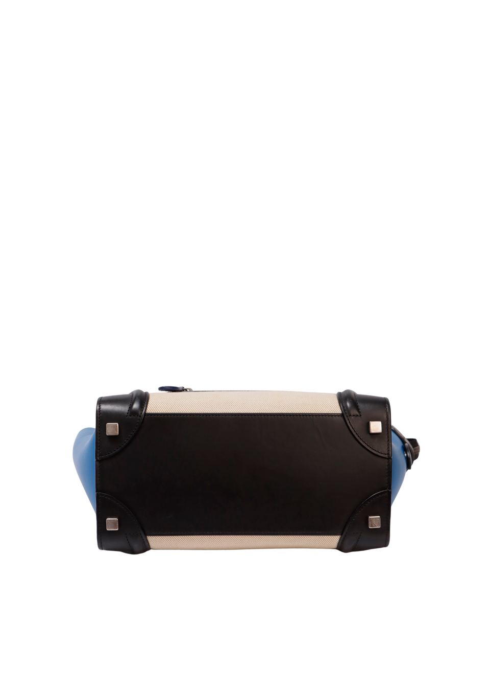 Descrição do Material: Couro calfskin nas cores azul, off-white e preto