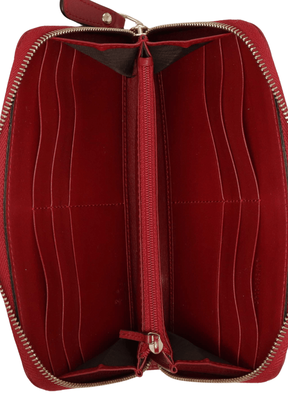 - Compartimento duplo com um bolso interno fechado por cursor e múltiplos bolsos porta-cartões;