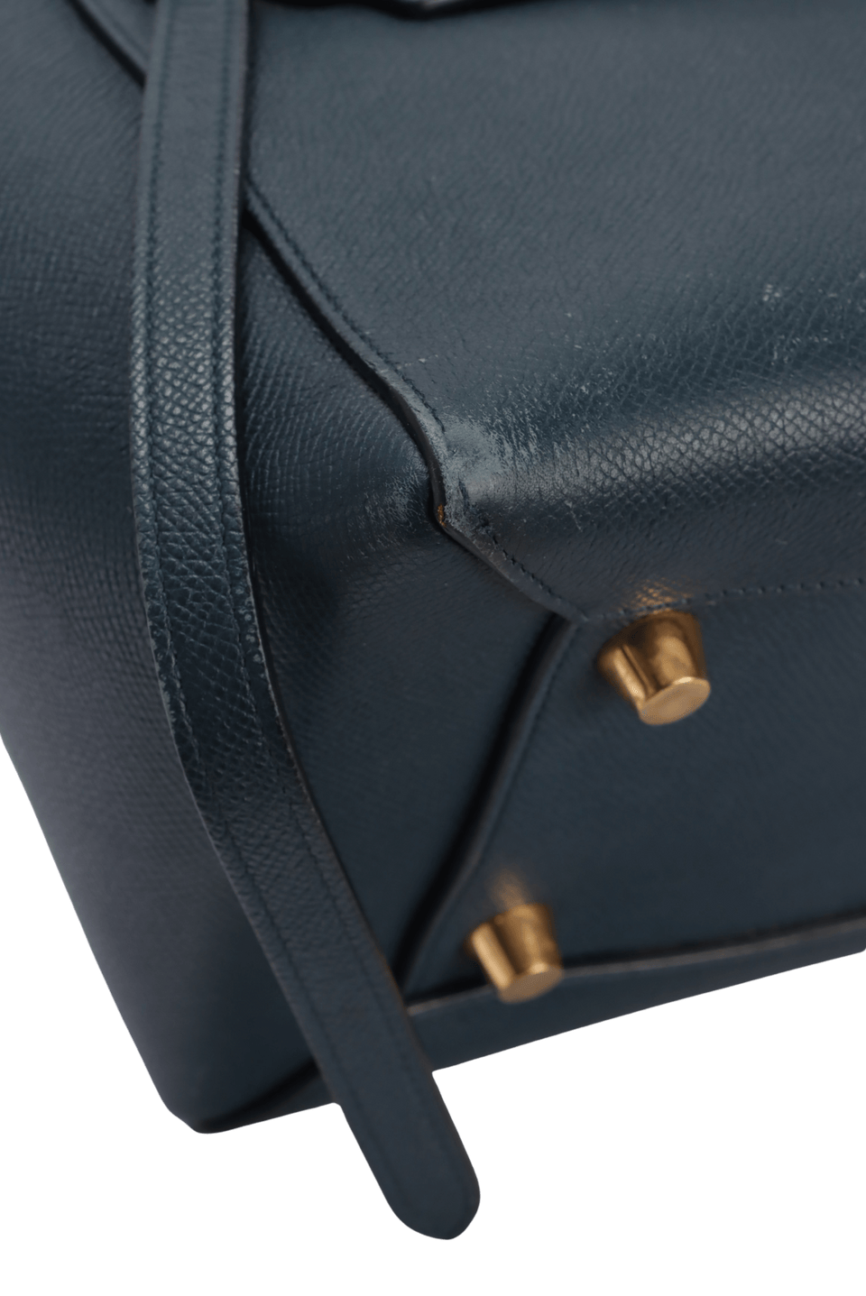 Bom, com aparência de usado. Apresenta marcas de uso por toda peça, principalmente na parte frontal próximo à base, leve craquelamento nas selagens dos acabamentos superiores, marcas de uso e descolorações nas ferragens, leve perda do formato original na parte posterior e manchas esbranquiçadas na parte interna.