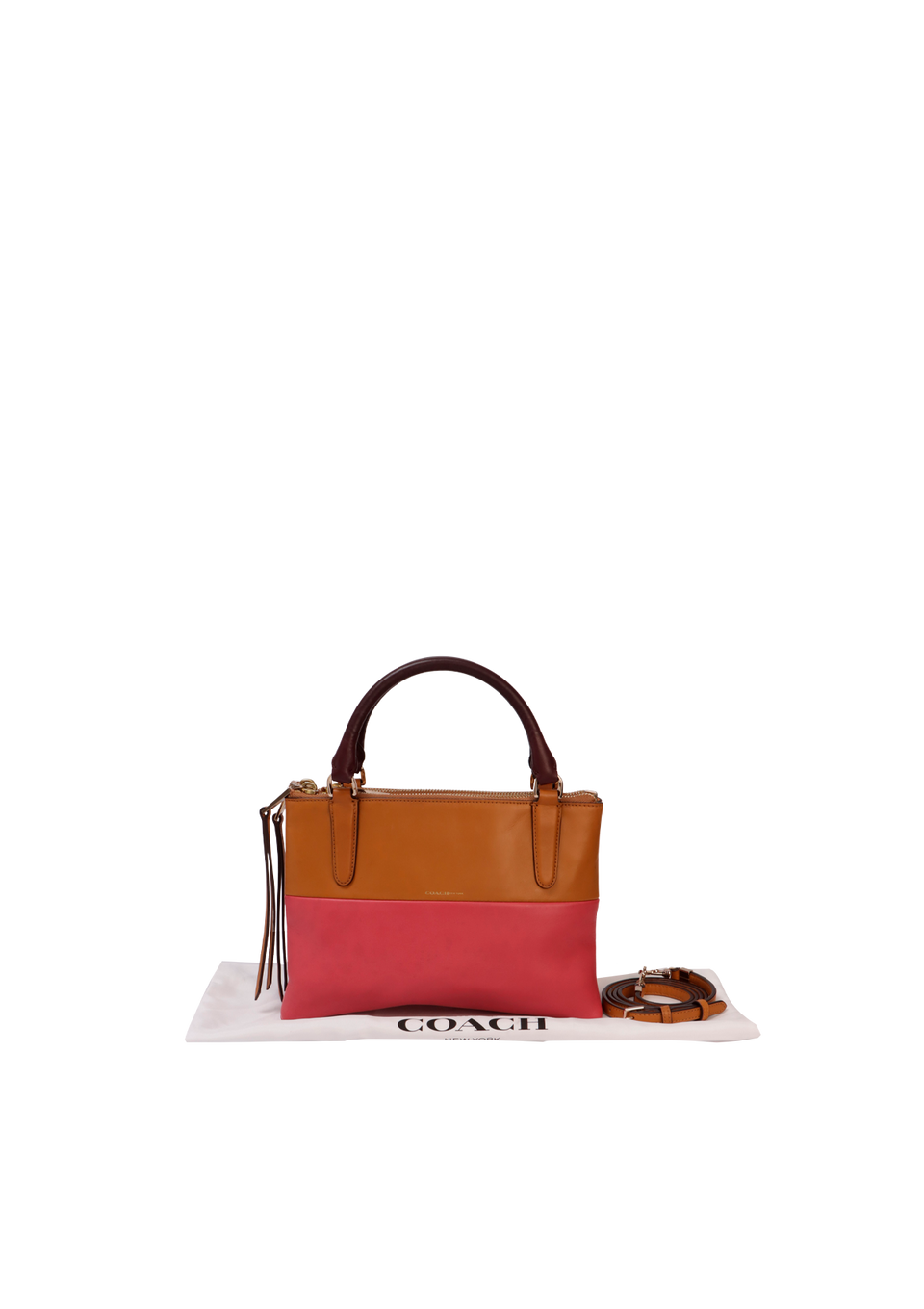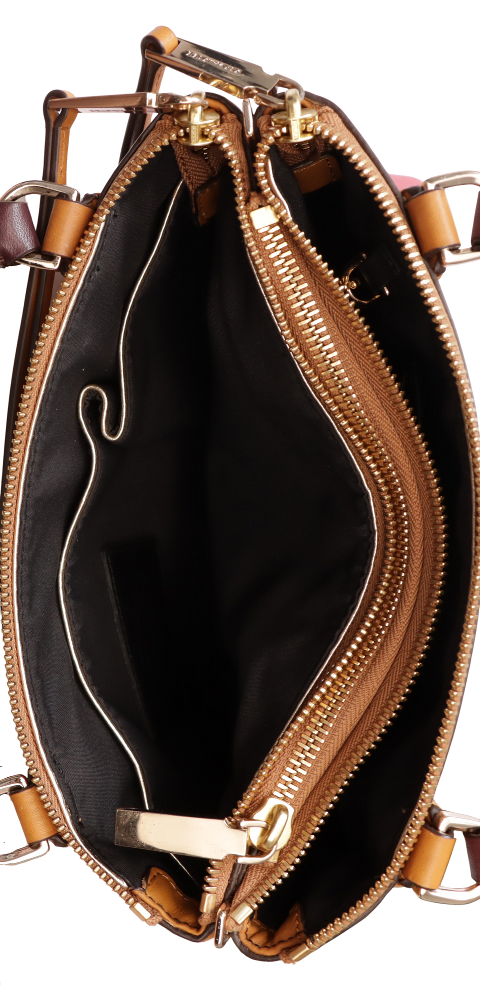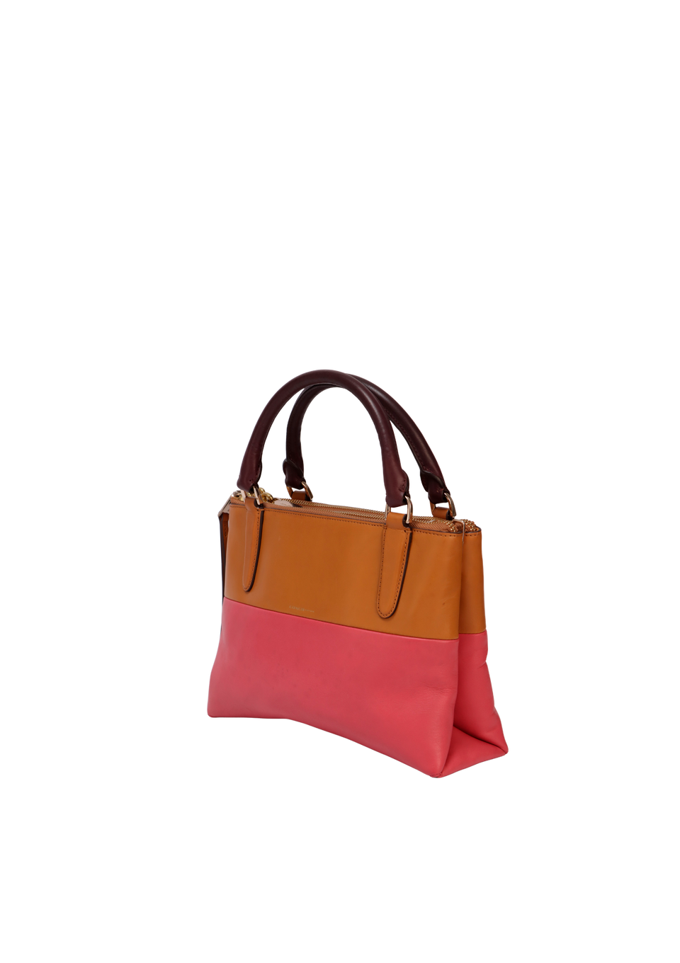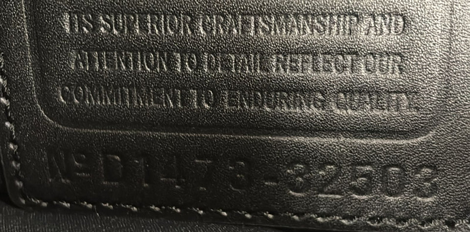 Bom, com aparência de usado. Apresenta leves desgastes, marcas de uso e manchas escurecidas pelo couro, principalmente na parte frontal inferior e nos cantos da base, pequenas marcas de uso nas selagens, especialmente nos acabamentos das alças, leves marcas de uso e descolorações nas ferragens, principalmente nos cursores, pequena deformação na estrutura, especialmente na parte posterior inferior de leves desgastes no forro.
