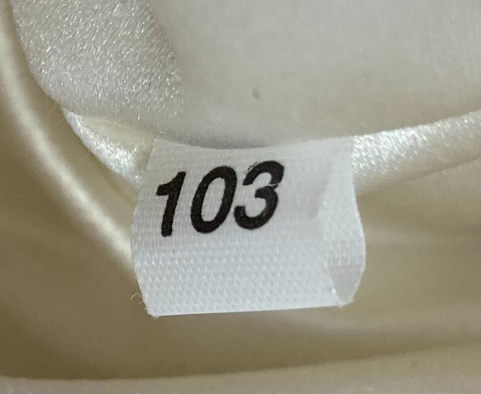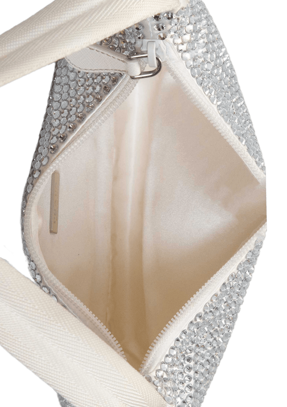 - Cetim branco com strass;