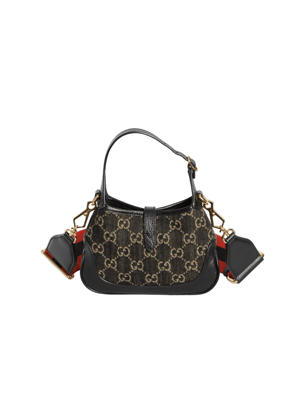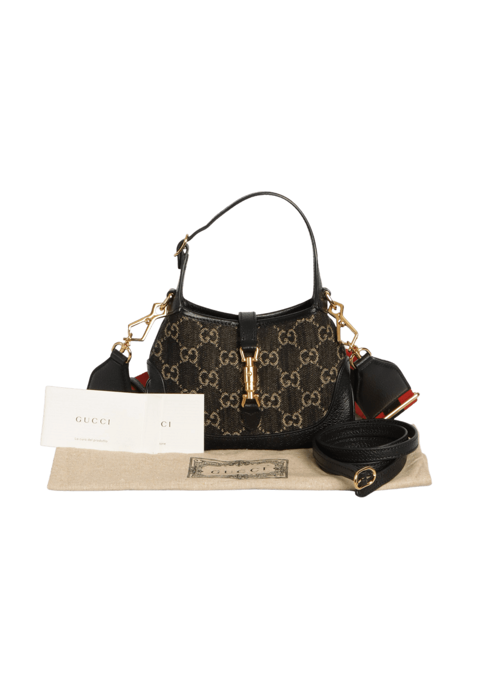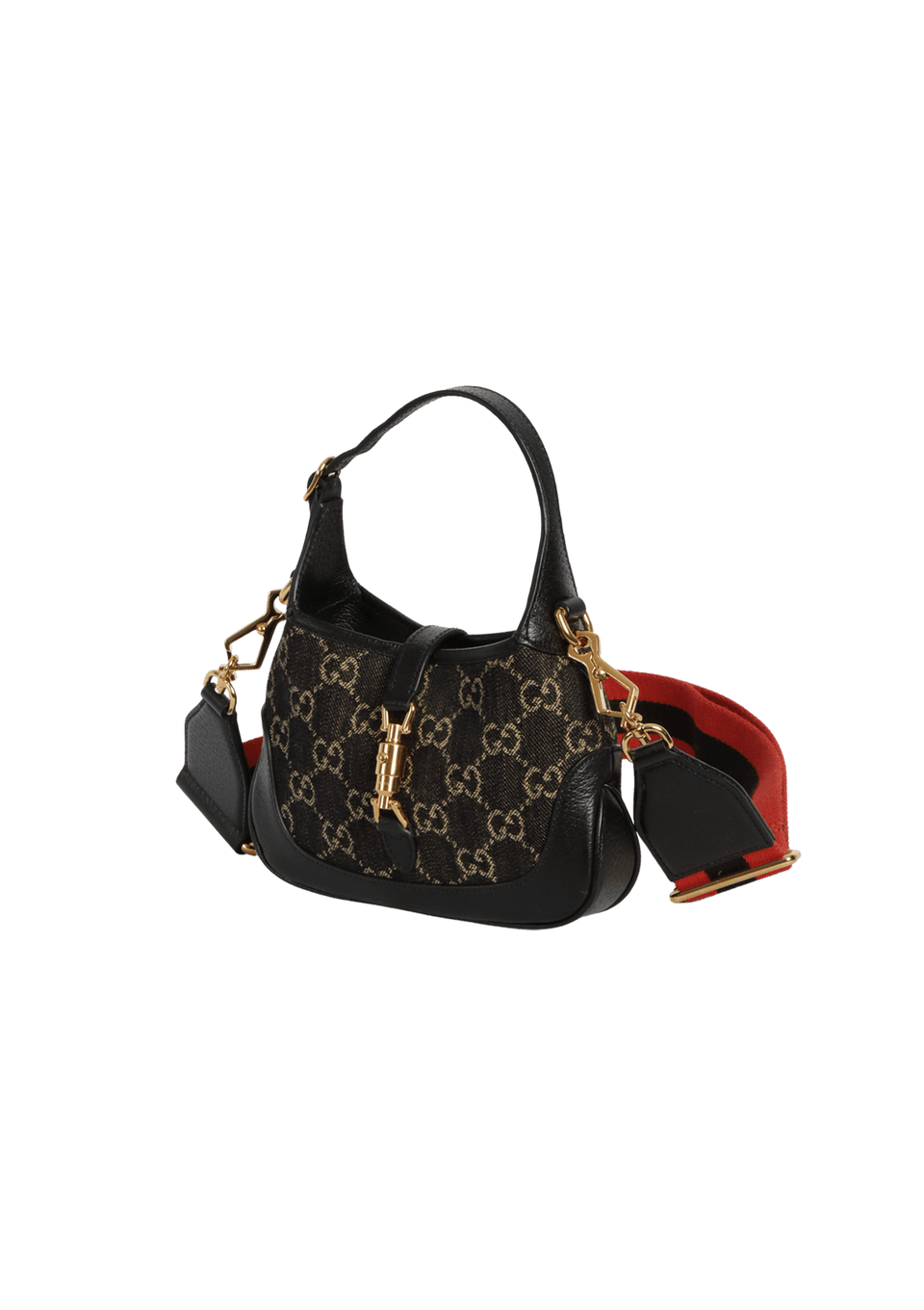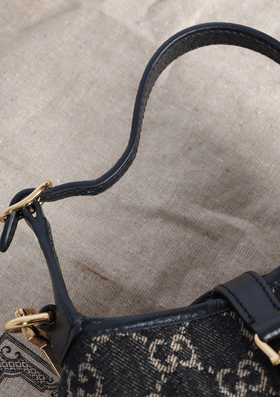 - Canvas GG denim preto e couro calfskin preto e alça em faixa Web;