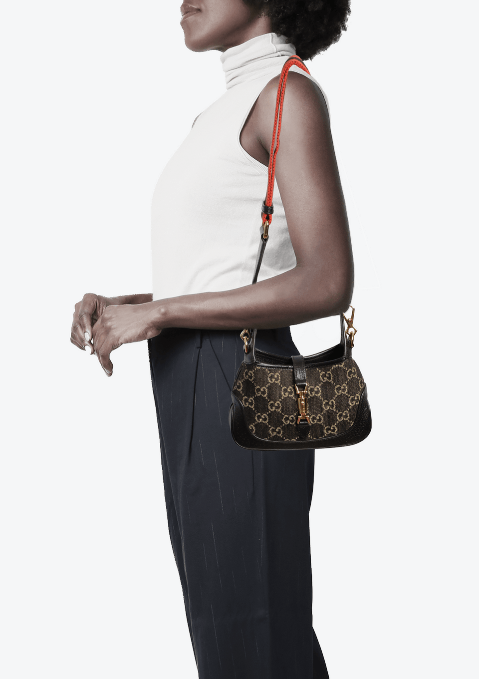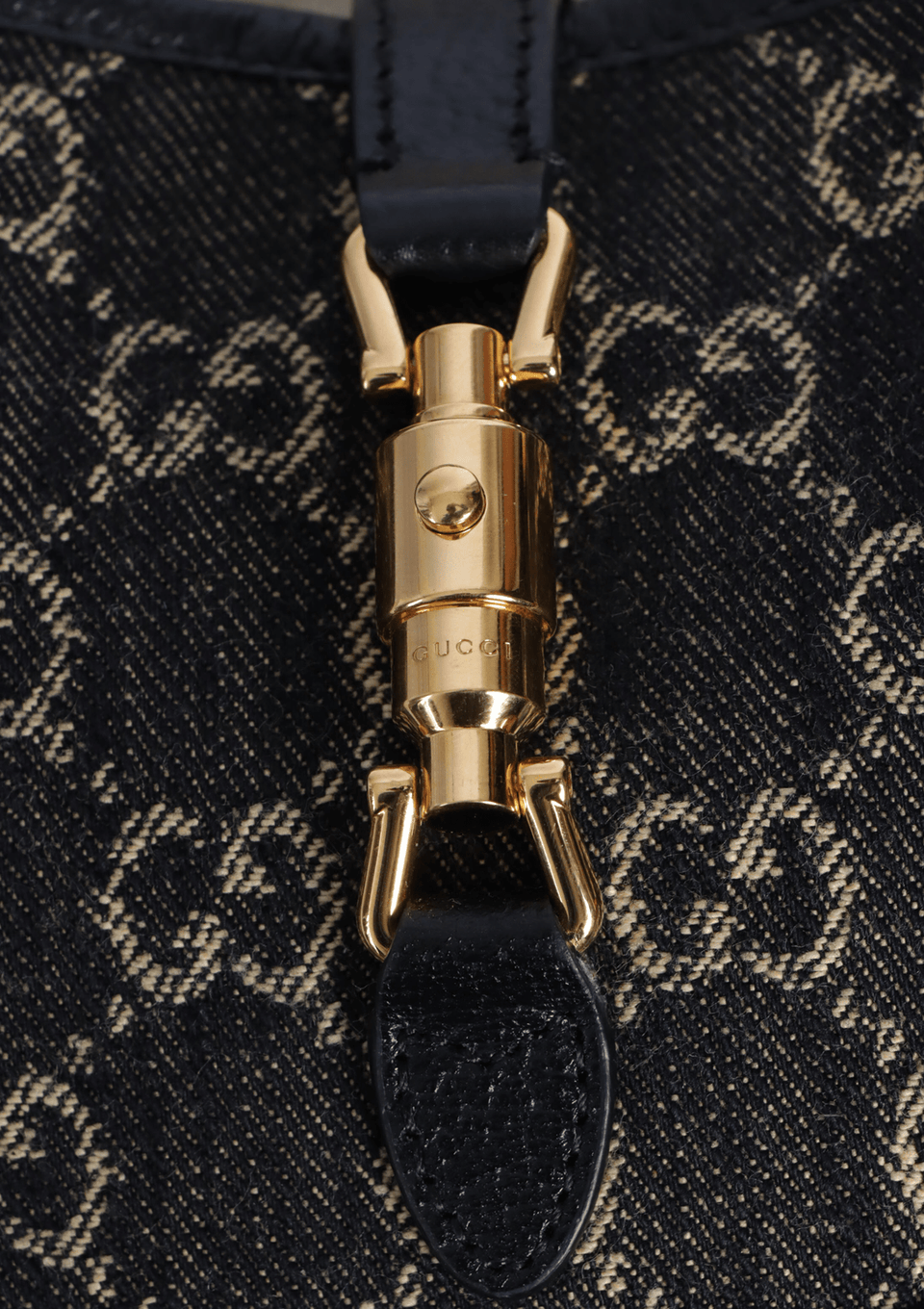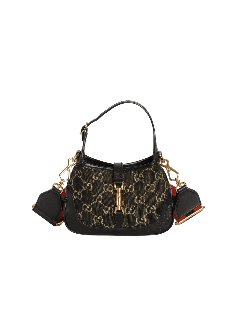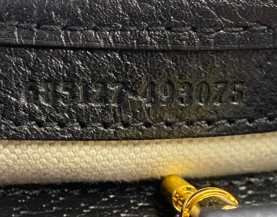 - Canvas GG denim preto e couro calfskin preto e alça em faixa Web;