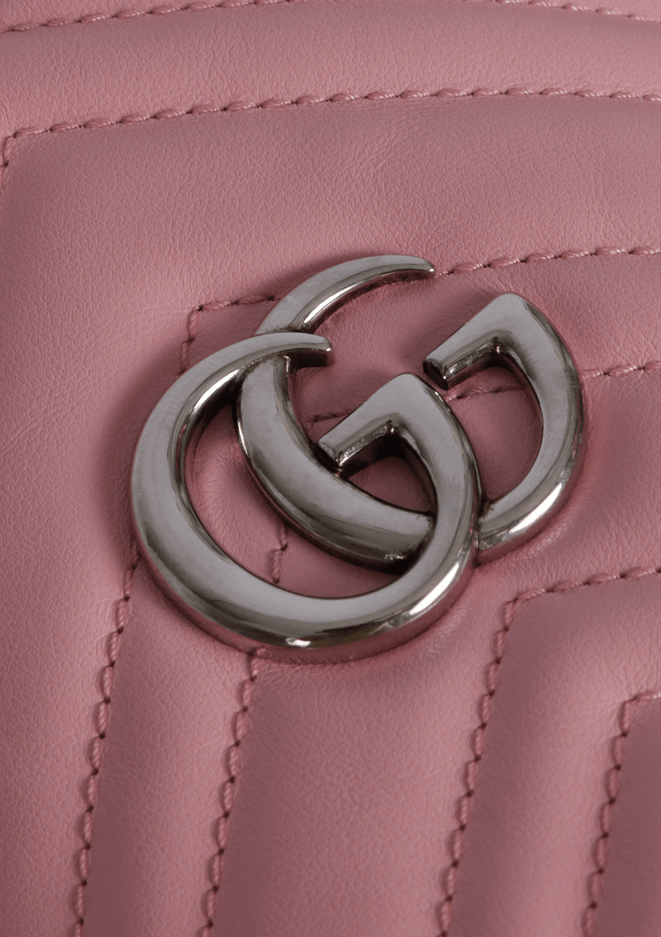 - Couro calfskin rosa com acabamento matelassê Marmont;